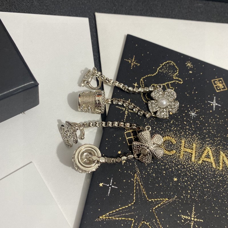 Chanel kukkaruukku kaksinkertainen C tupsu täynnä timanttiriippuvaisia kukkakorvakoruja.