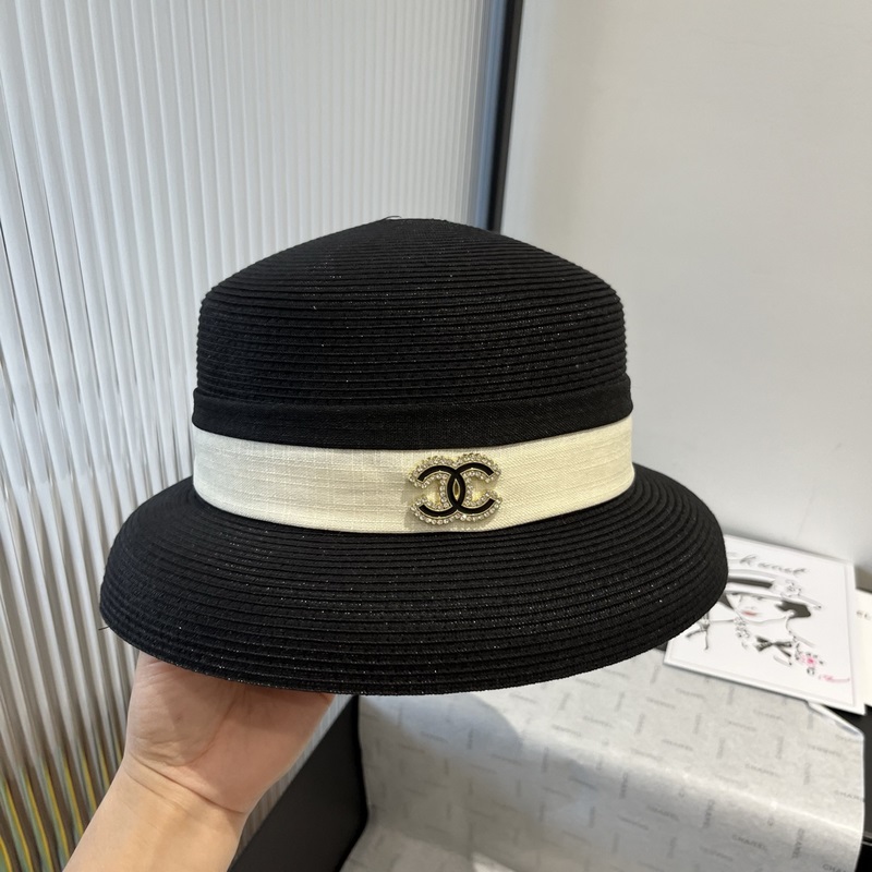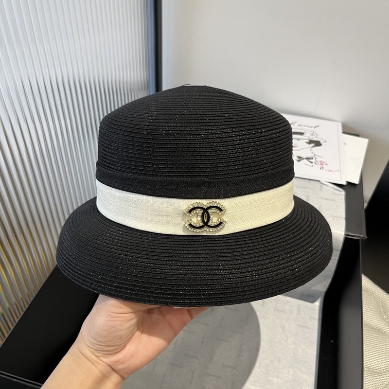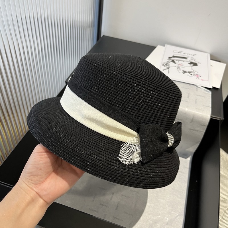 Chanel-lyhtyhattu, valmistettu PP-oljesta, naisellinen, pään ympärysmitta 57cm