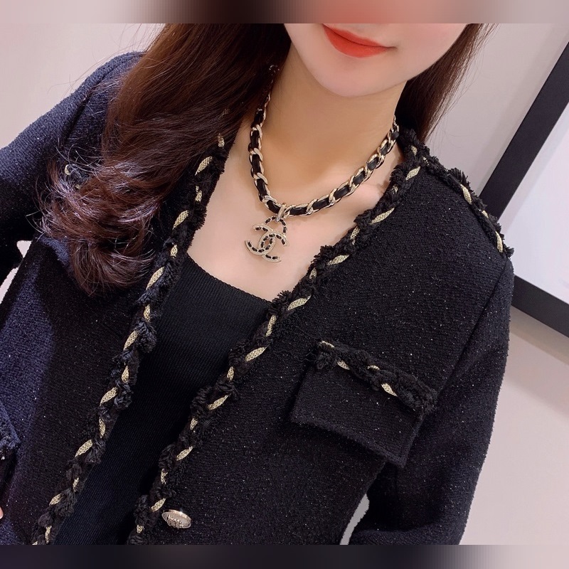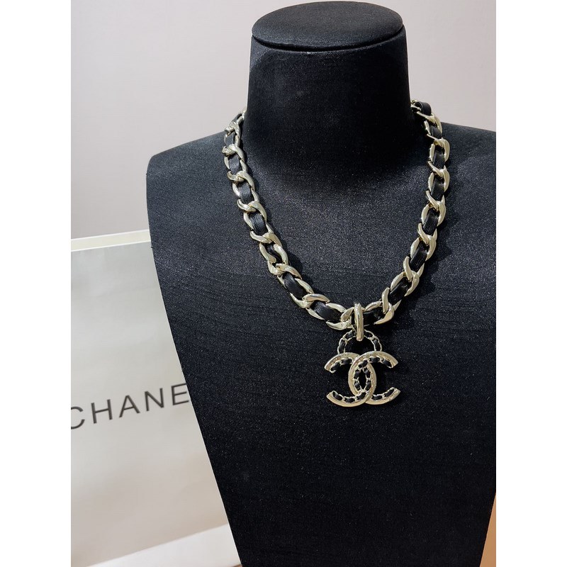 CHANEL-kaulakoru musta nahkainen punk-tyttötyyli