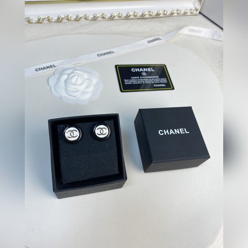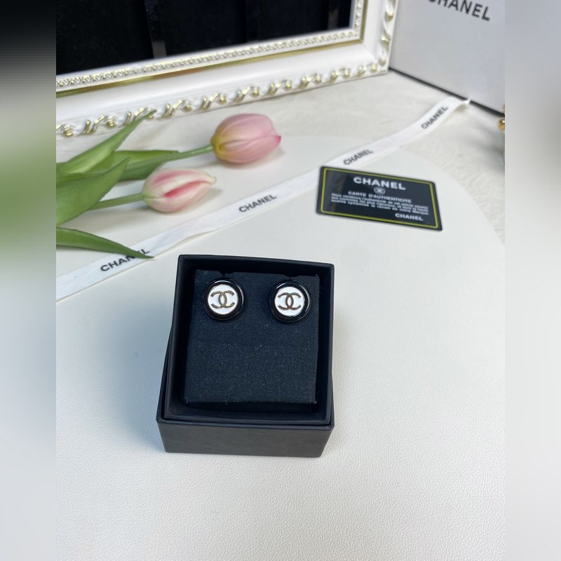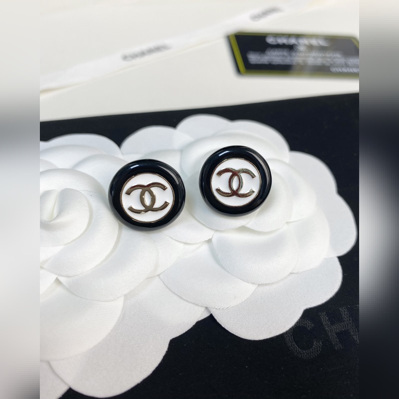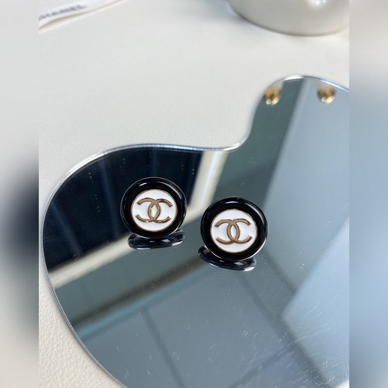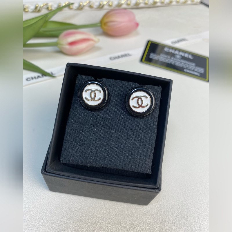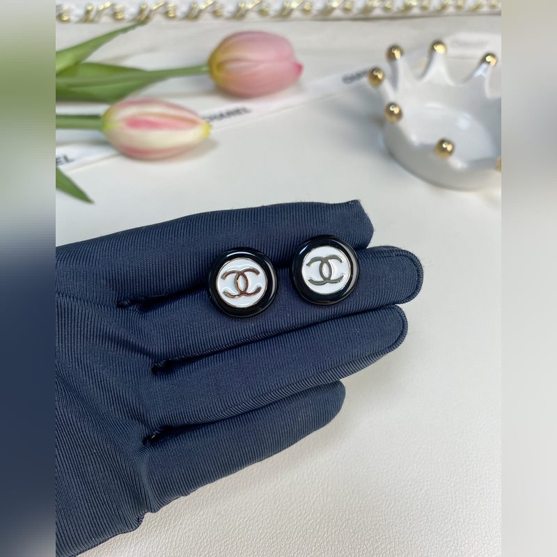 Chanel mustavalkoiset nappipyöreät hartsikorvakorut