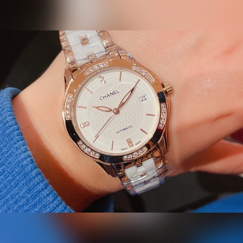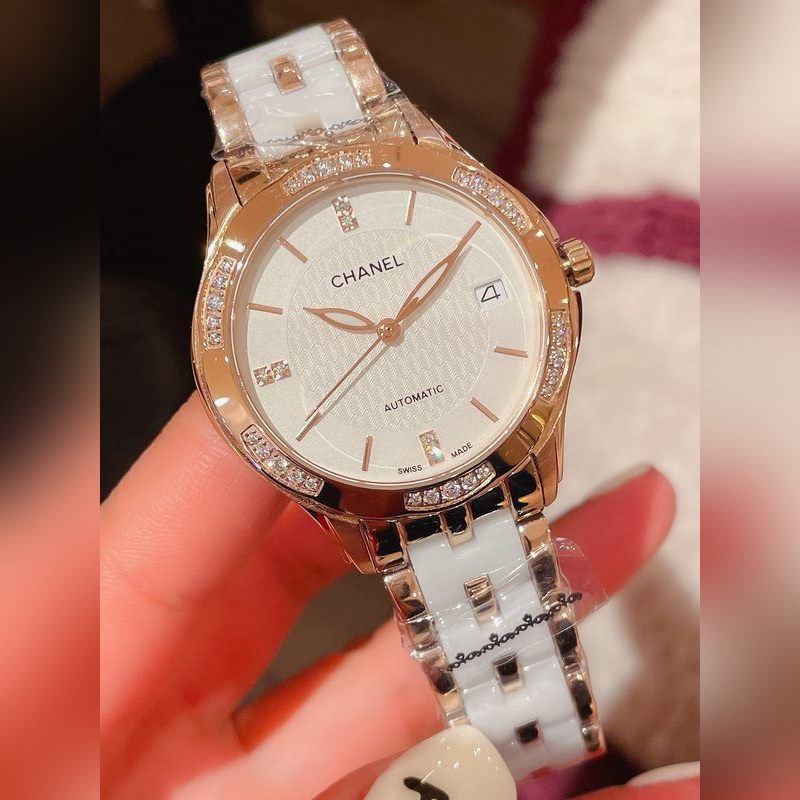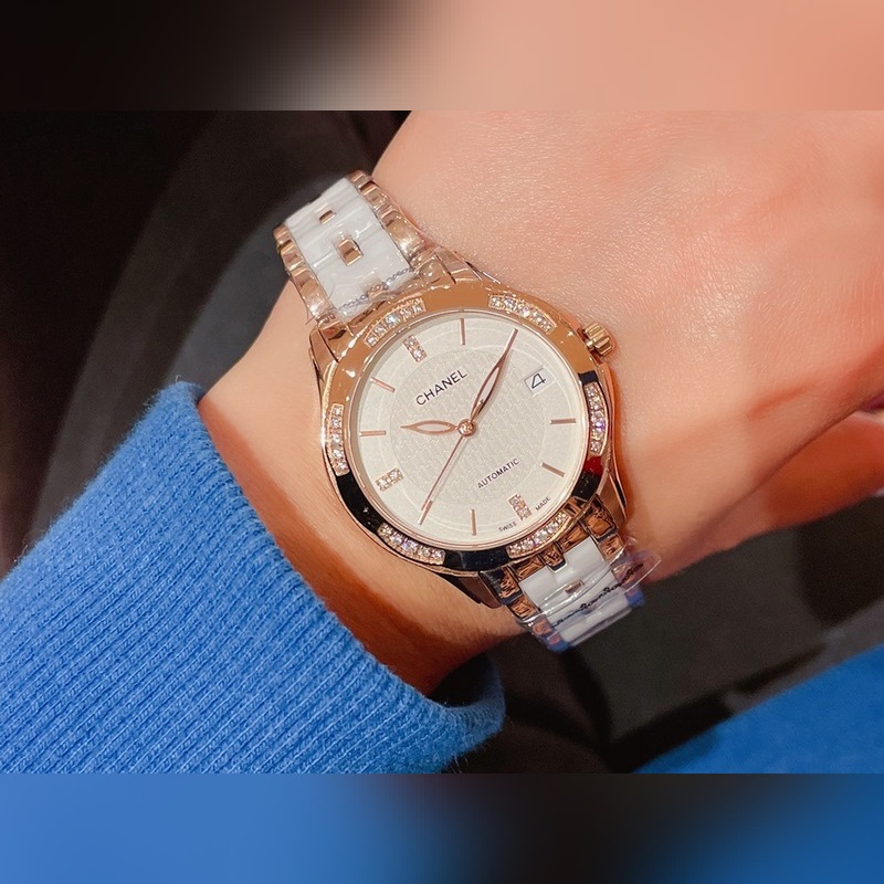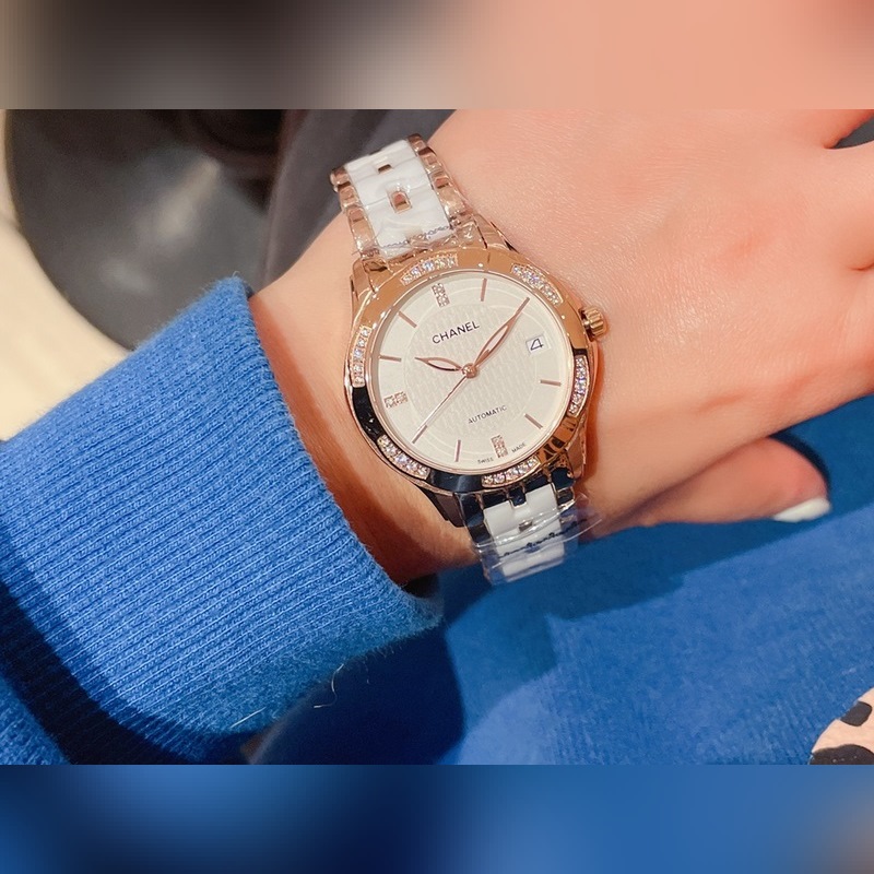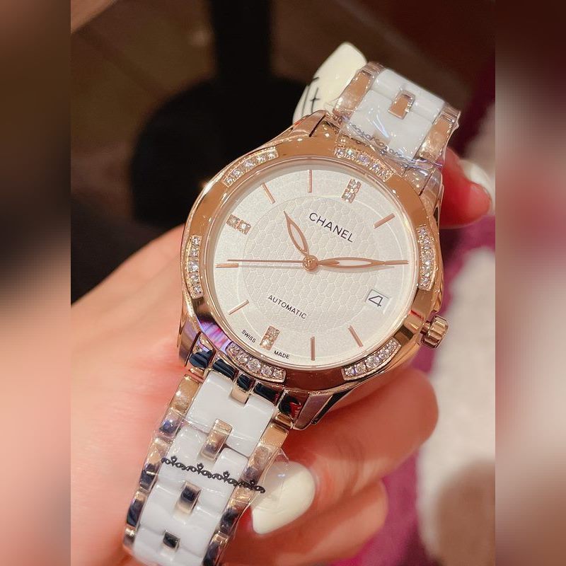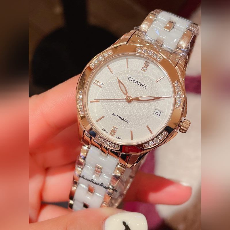 Tuonti kvartsikoneisto 316L ruostumaton teräskotelo Sapphire naarmuuntumaton lasipeili Tuotu vasikkanahkainen hihna/keraaminen ruostumaton teräs Halkaisija 35mm paksuus 8mm Tämä kello on naisten rakastama, heijastaa heidän ainutlaatuista persoonallisuuttaan ja viehättävää tyyliään eri tilanteissa