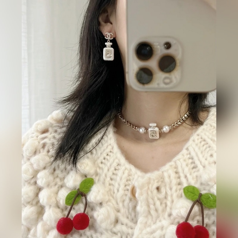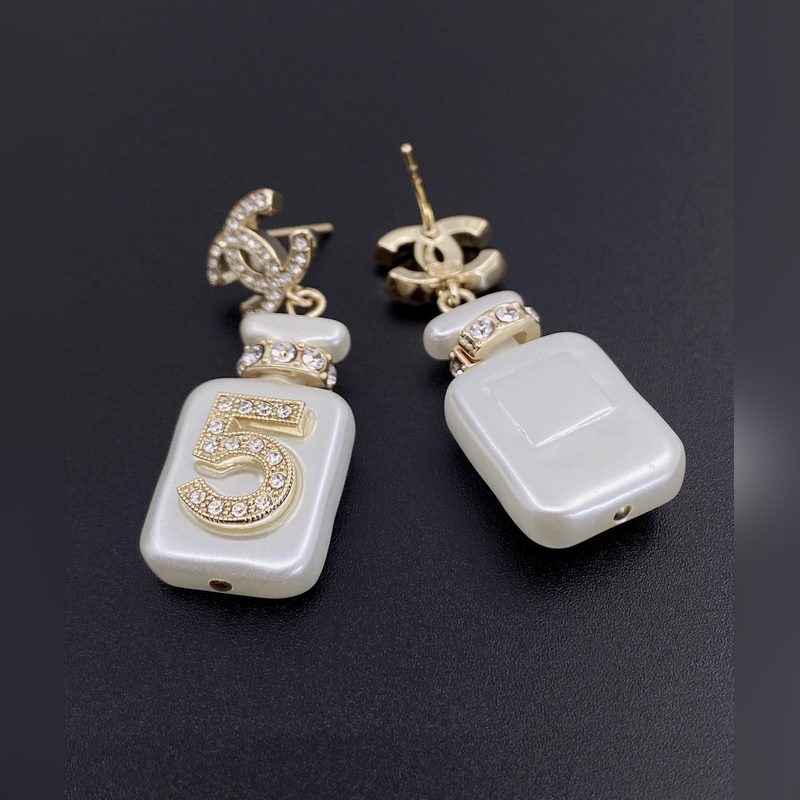 Chanelin uusi 5-kirjaiminen hajuvesipullo valkoiset korvakorut johdonmukainen Z messinkimateriaali