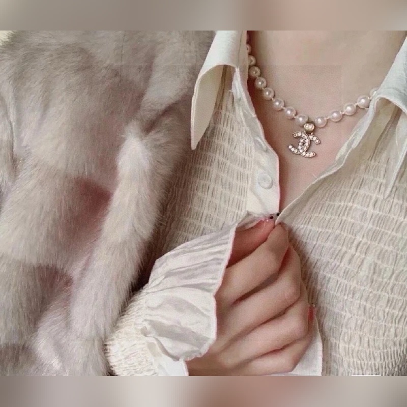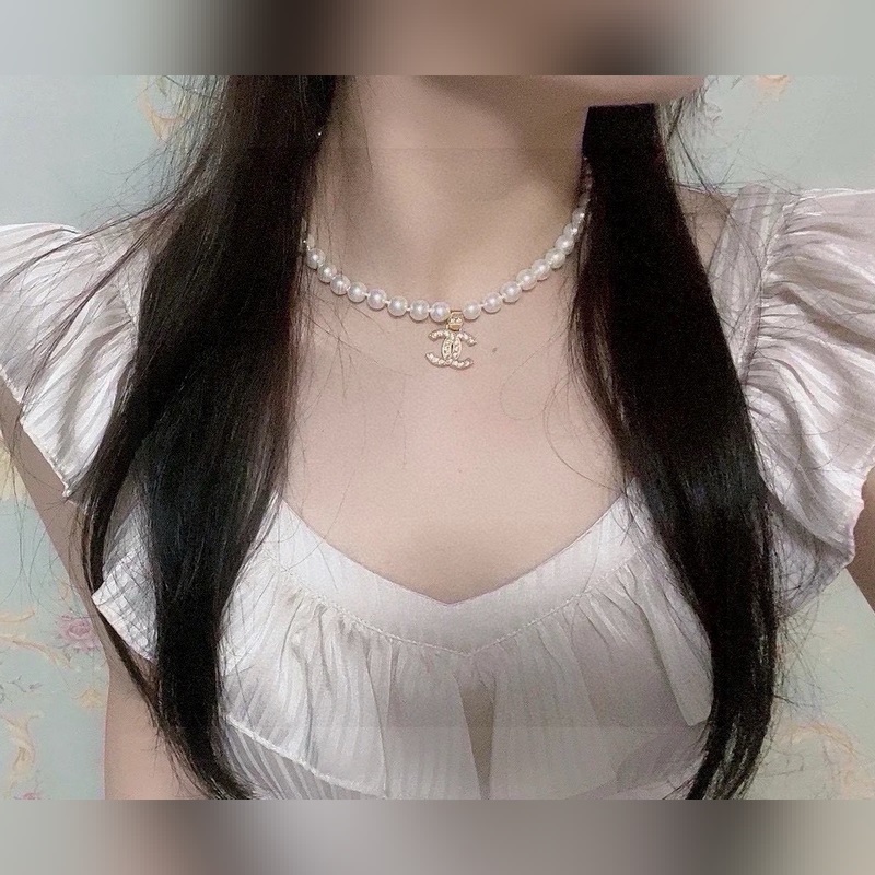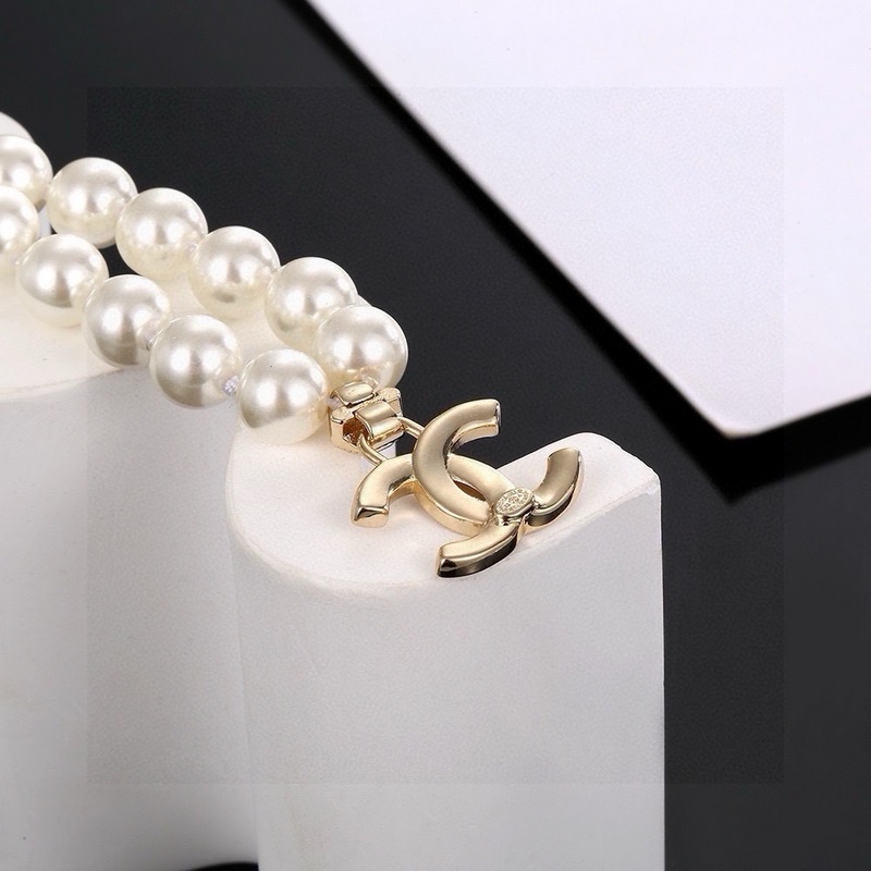 Ch@nel Chanel helmikaulakoru Lasihelmet ja pienet kristallit on pisteytetty epäsäännöllisesti tupla-C:llä ja pienillä palloilla. Neutralointi himmeällä laitteistolla tekee siitä ainutlaatuisemman ja muodikkaamman. Materiaali messinkiä