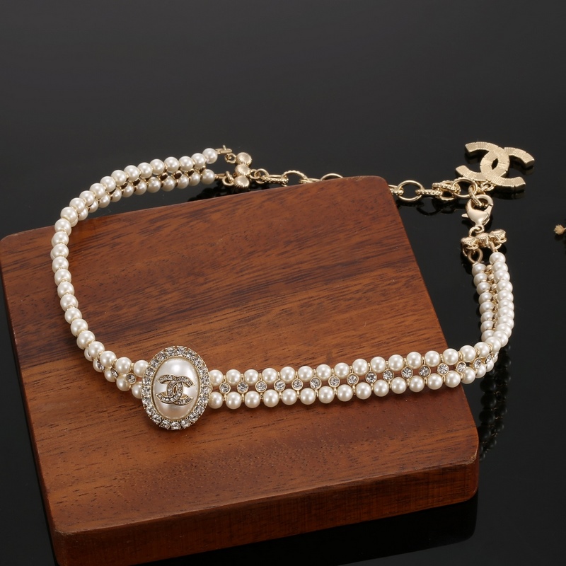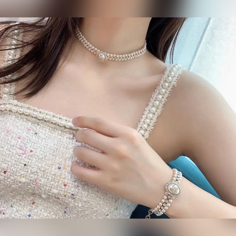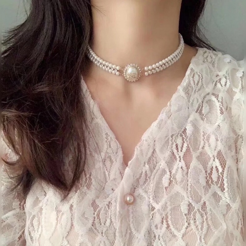 Chanel soikea helmi ja timantti kaksikerroksinen kaulakoru, voimakkaasti kudottu ja käsin upotettu, muodikas ja tyylikäs, hyvä rakenne