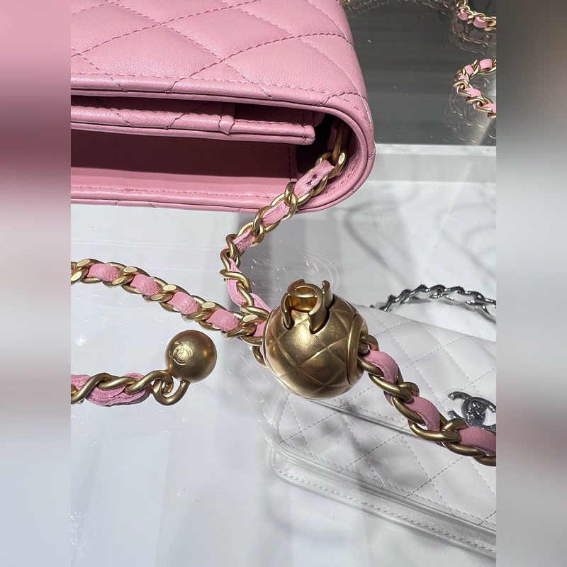 Se on pieni ja neliömäinen. Siinä on metallipallo, jolla voi säätää ketjun pituutta. Se tuntuu hienostuneemmalta. Sitä voidaan kantaa vartalon poikki tai yhdellä olkapäällä. Voit myös lyhentää olkahihnaa ja käyttää sitä kainalolaukkuna.