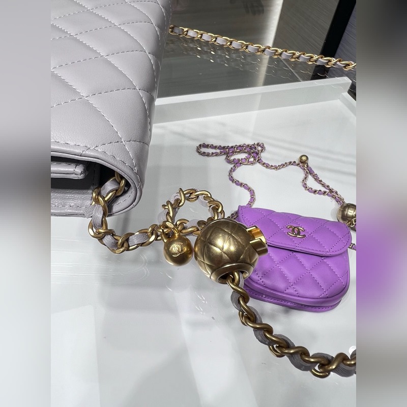 Se on pieni ja neliömäinen. Siinä on metallipallo, jolla voi säätää ketjun pituutta. Se tuntuu hienostuneemmalta. Sitä voidaan kantaa vartalon poikki tai yhdellä olkapäällä. Voit myös lyhentää olkahihnaa ja käyttää sitä kainalolaukkuna.