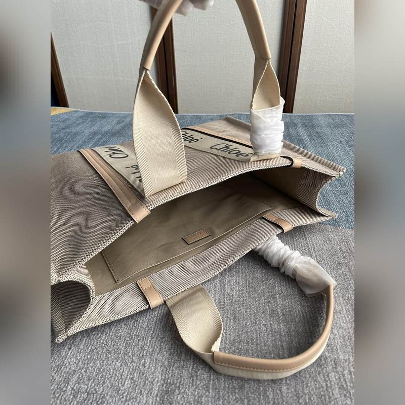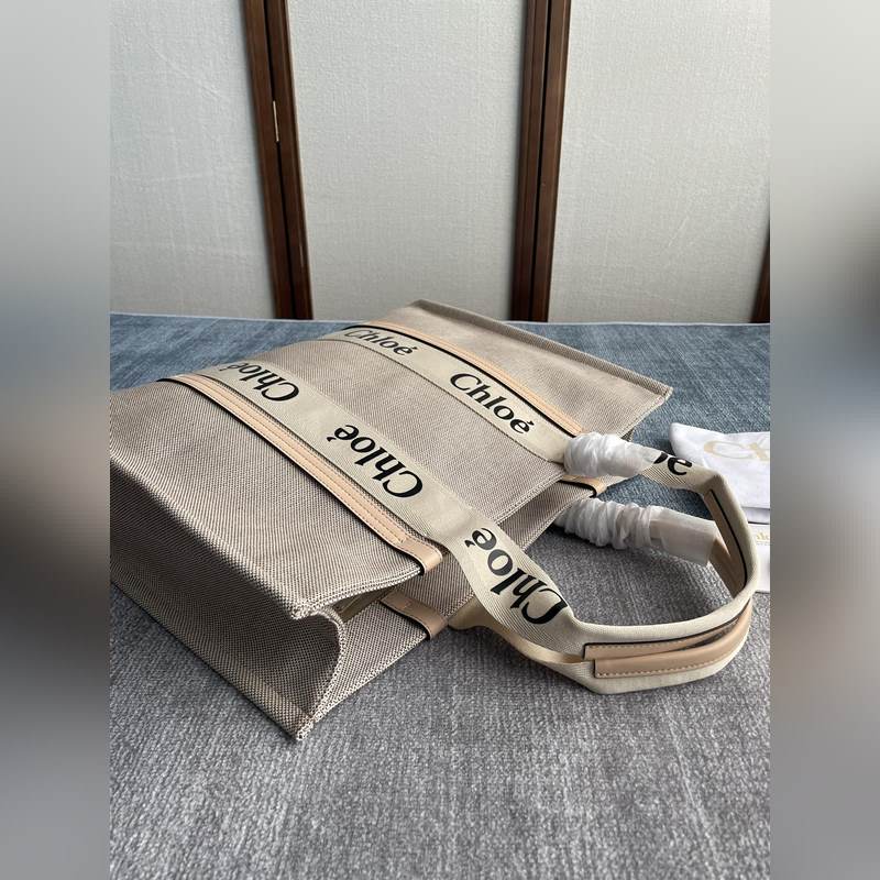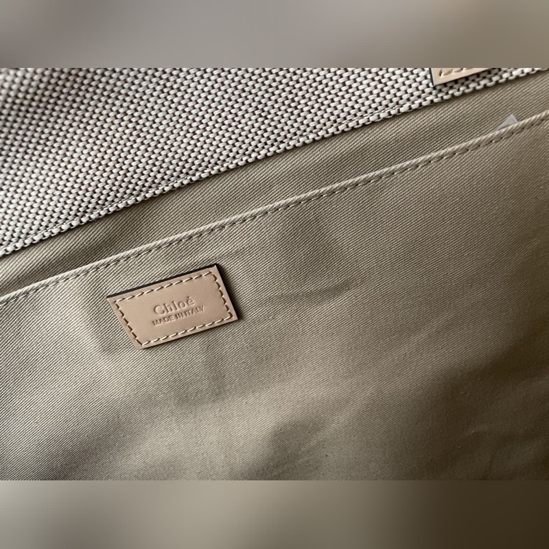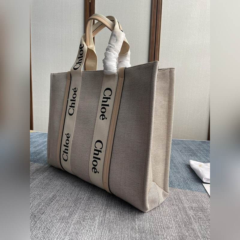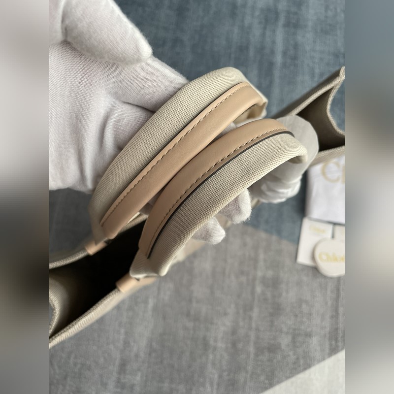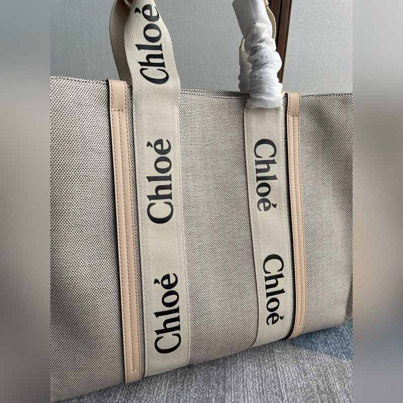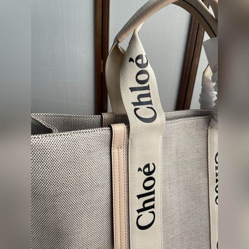 CHLOE Biscuit Pink -suurta kantokassia voidaan kutsua trendikkääksi laukkuvalmistajaksi Woody-kangaskassiksi