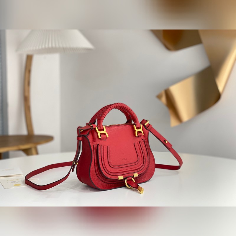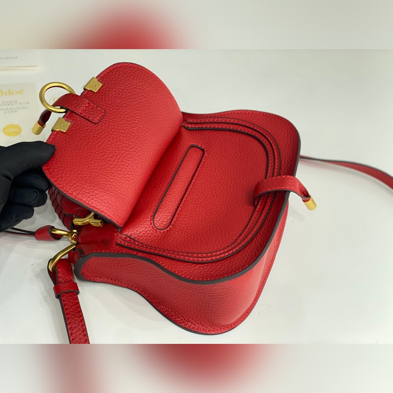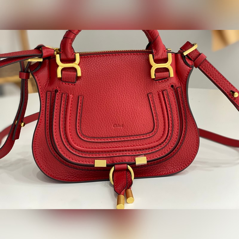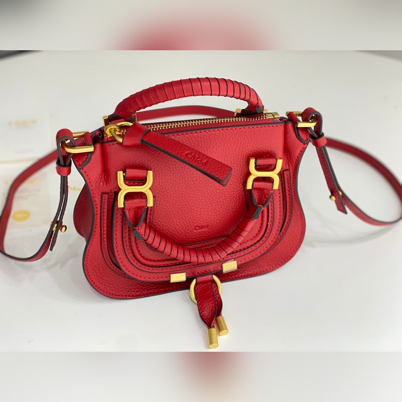 Aito alkuperäinen nahkainen versio Chloe x Marcie pieni kirkkaan punainen#