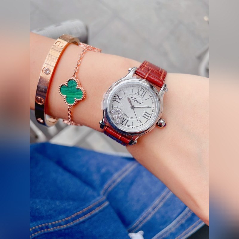 Chopardin suosituin ja myydyin sarja on aina tulkinnut Chopardin ikonisten älytimanttien käsitteen herkillä tekniikoilla. Tämä työsarja on pehmeä ja muodikas. Kellotaulussa olevat timanttipallot voivat liukua ja pyöriä vapaasti, ja omaisuus tulee, jolloin jokainen nainen voi hämmästyttää maailmaa viehättävimmällä ilmeellä. Chopard Happy Diamonds -sarja on Chopardin edustavin kello. Laminoidun lasin erottuvin 5 timanttia saavat aikaan pyöräytyksiä kuten tanssia. Tämä Happy Sport ruostumattomasta teräksestä valmistettu kello on muodikas ja lempeä, ja sen kellotaulun halkaisija on pieni, 30 mm