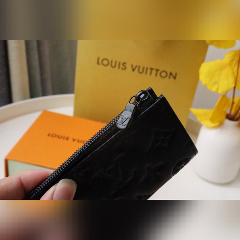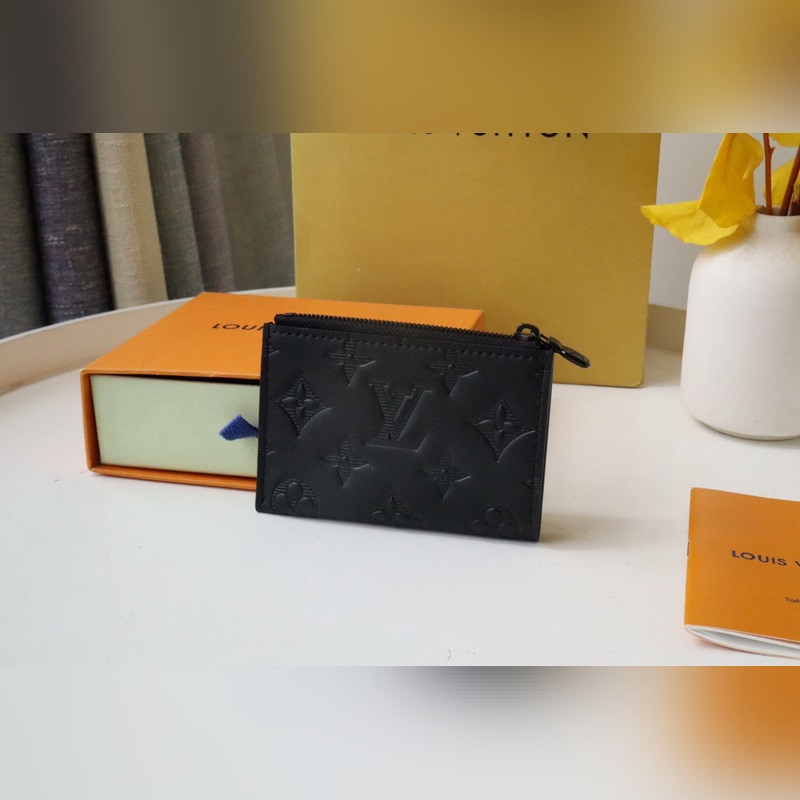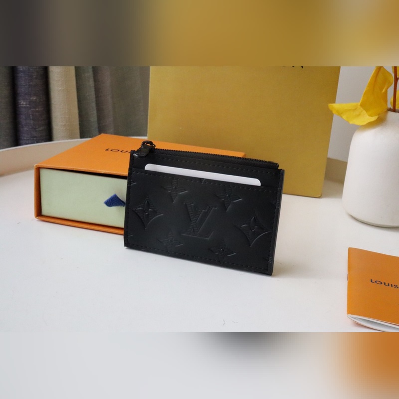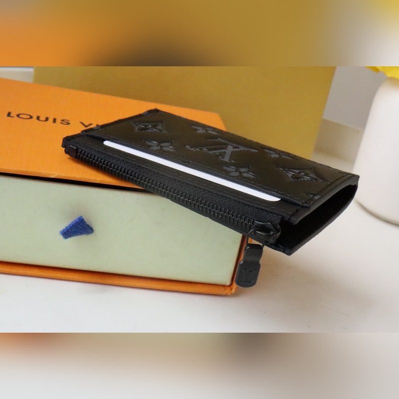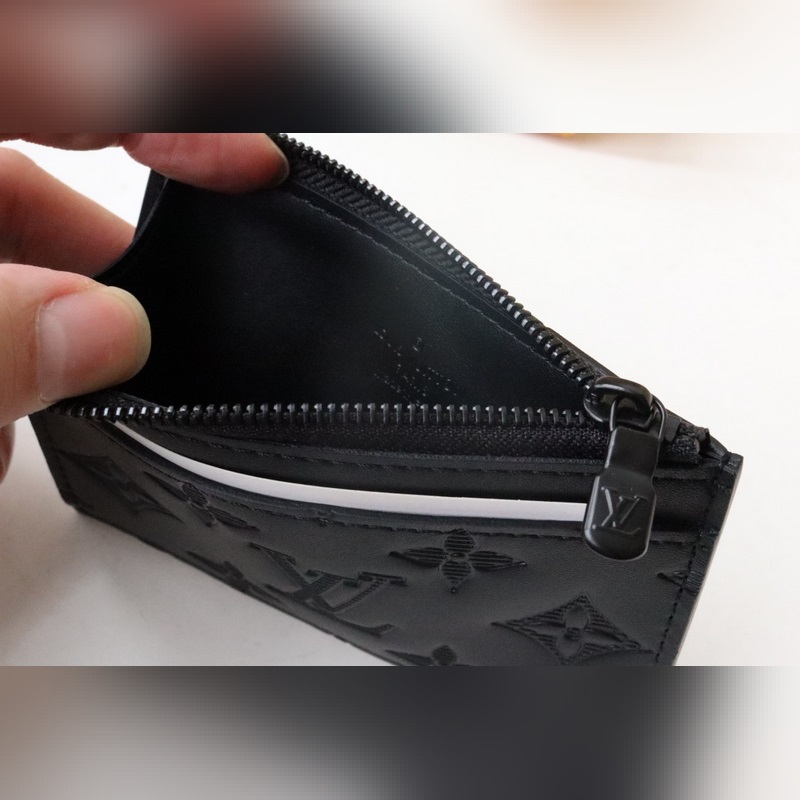 Tämä Coin-korttiteline on valmistettu pehmeästä lehmännahasta, jossa on kohokuvioitu Monogrammi-kuvio. Siinä on kompakti kokoonpano, jossa on vetoketjullinen kolikkolokero ja edessä oleva korttilokero, jotka voidaan helposti laittaa taskuun.
