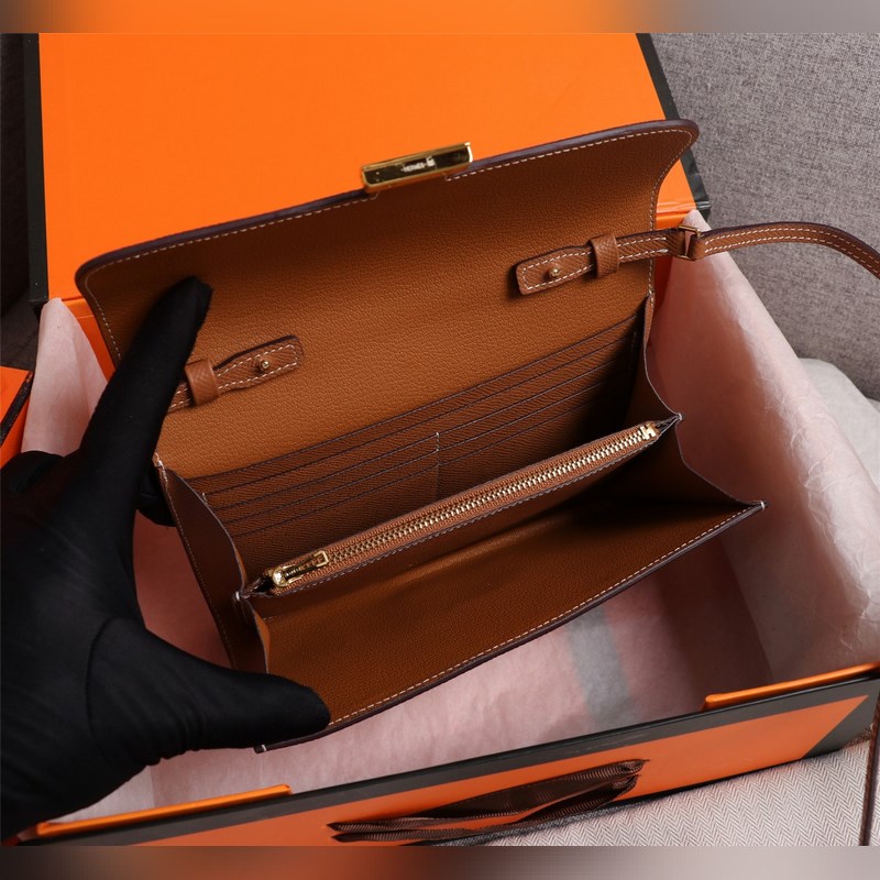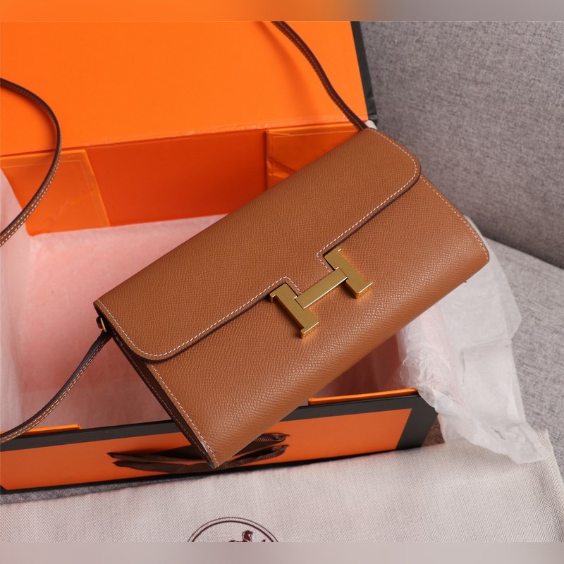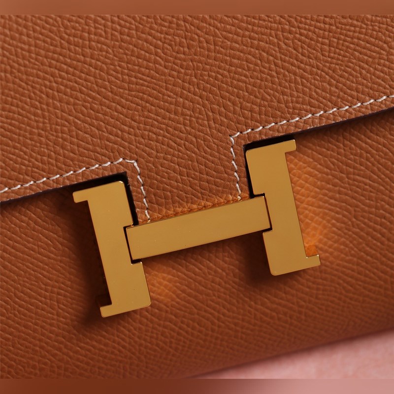 Hermès Constance -laukku, jossa olkahihna, “H”-lukko, 12 korttipaikkaa, 2 setelitaskua, 1 keskitasku, takatasku, 1 vetoketjullinen tasku.