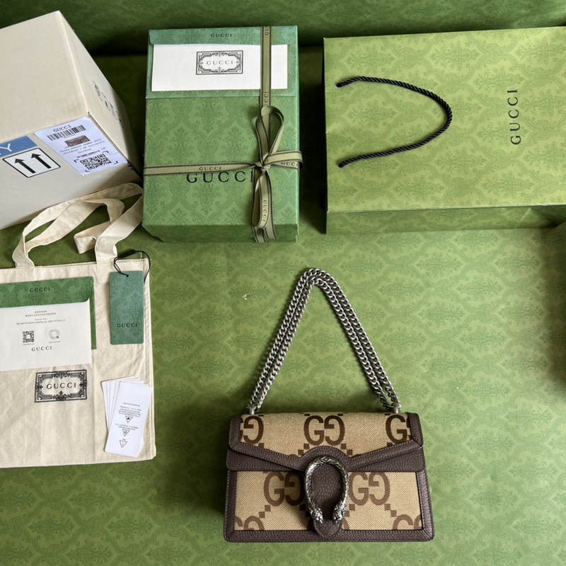 《Täydellä alkuperäisellä vihreällä laatikkopakkauksella》Kuvioinen tiikeripää on Dionysus-sarjan klassinen ominaisuus, joka herättää ihmisten muistoja klassisista designsymboleista. Kissat juoksevat brändin muotoilumaailman läpi välittäen brändin kiehtovuutta luonnon villiä kauneutta kohtaan. Tässä kappaleessa on vintage-hopeasävyisiä asusteita, jotka on yhdistetty sinisen ja norsunluun GG-ruskean jacquard-kankaan kanssa.