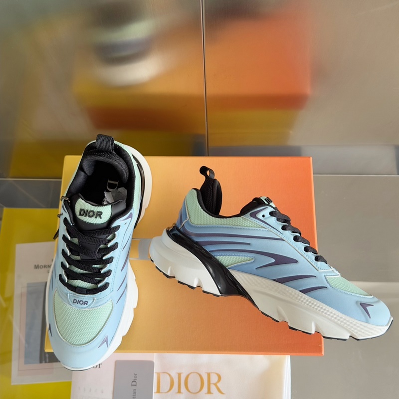 Alkuperäinen osto, kehitys ja tuotanto Tämä B44 Blade -lenkkari tulee DIOR AND LEWIS HAMILTONin eksklusiivisesta rajoitetusta sarjasta, jossa on muodikas muotoilu ja siluetti. 2000-luku. Valmistettu gradientin sinisestä verkkokankaasta, yhdistettynä sävyisillä teknisillä kangasompeleilla. Pohja on koristeltu kontrastisilla Blade-paneeleilla, jotka kunnioittavat juoksua. DIOR AND LEWIS HAMILTON -logokoru roikkuu silmukasta, ja Dior-logo on koristeltu yläosassa, kantapäässä ja sivulla. Mustat nauhat tekevät siitä hienostuneemman, ja pehmustettu tukirakenne selässä korostaa urheilullista esteettistä tyyliä, joka voi lisätä modernia tyyliä erilaisiin arkimuotoihin.