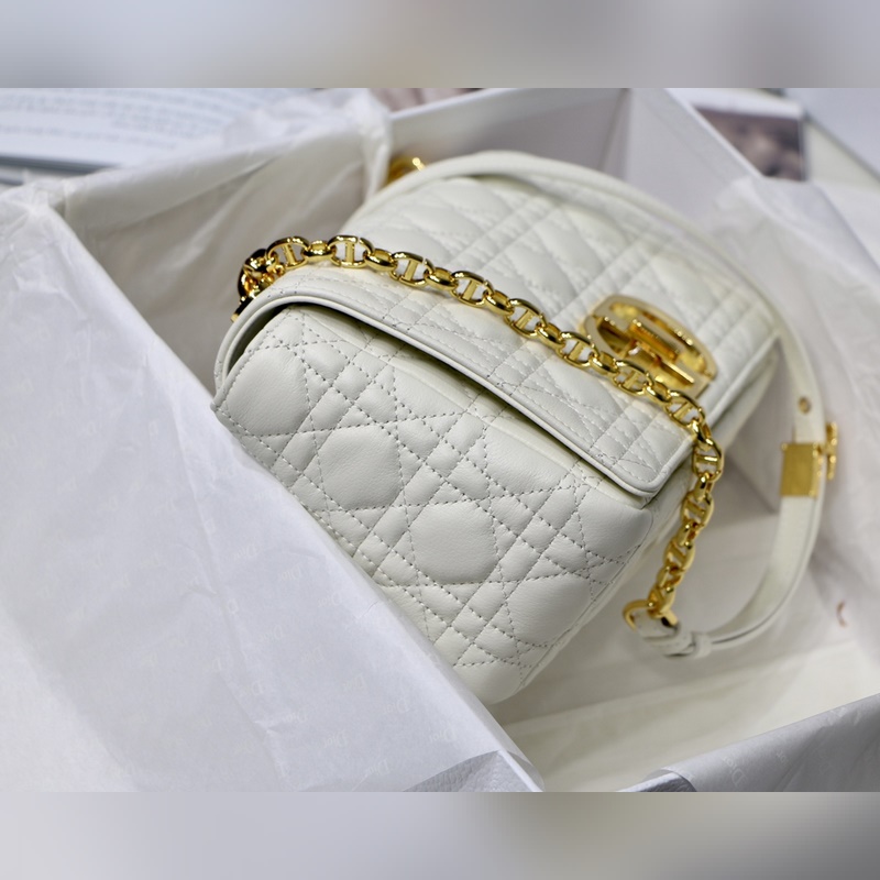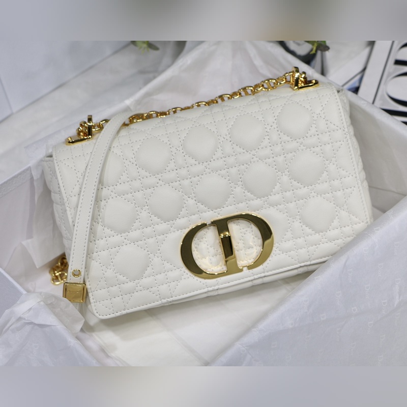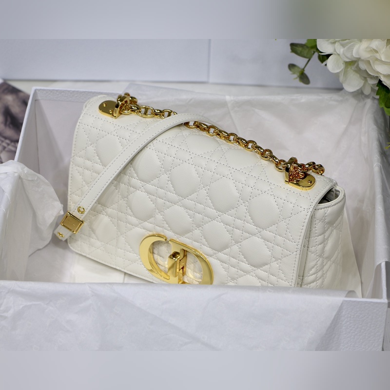 Uusi Di.or Caro -laukku on valmistettu lehmännahasta ja koristeltu tunnusomaisilla cannage-ompeleilla. Materiaali on pehmeää ja läppä on koristeltu vintage-kultapinnalla olevalla “C.D”-soljella, joka on saanut inspiraationsa Christian Di.or -hajuvesipullon sulkemisesta. Pienessä koossa on irrotettava “C.D”-ketjun olkahihna, joka voidaan myös korvata brodeeratulla leveällä olkahihnalla tyylikkäämmän ja muodikkaamman ilmeen saamiseksi. Sitä voidaan helposti käyttää päivittäiseen ilmeeseen tai iltajuhliin.