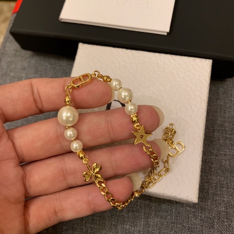 Dior New Clover CD Pearl Rannekoru – Näennäisesti yksinkertainen muotoilu kätkee charmia kaikkialle. Pieni ympyräosa ottaa apilan muotoilun ja on koristeltu viisisakaraisilla tähdillä, mikä on tyylikäs ja antelias.