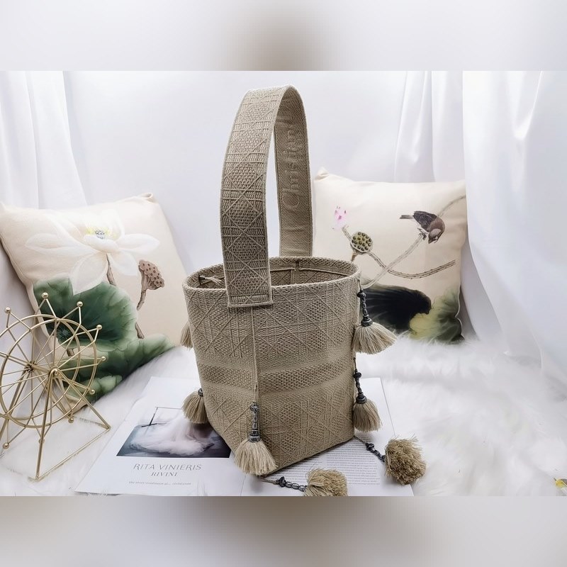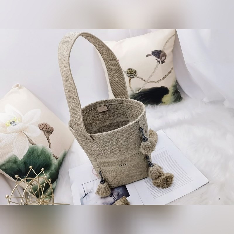 DIOR D-Bubble Bucket Bag Apricot Diamond