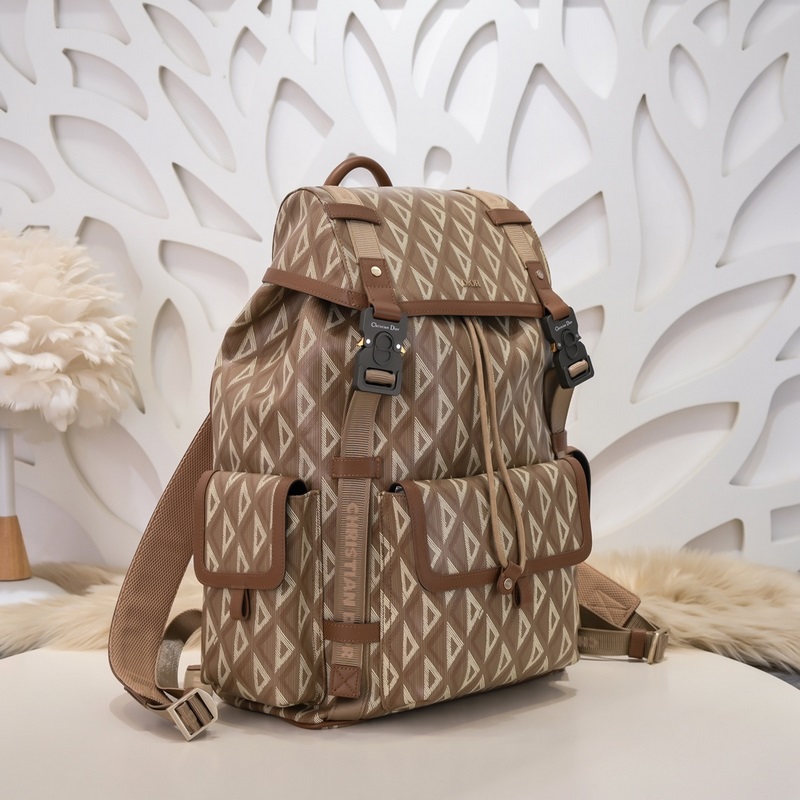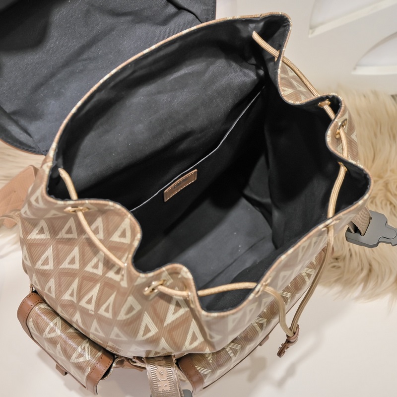 Tämä Dior Hit the Road -reppu on uusi tyyli tällä kaudella, jossa moderni tyyli yhdistyy Diorin haute couture -henkeen. Se on huolellisesti valmistettu Dior-kahvinvärisestä CD Diamond -kuviokankaasta, jossa on kaksi “CHRISTIAN DIO” -logo-nylon-jacquard-hihnaa. Tilava päälokero, suuri läppätasku edessä ja kaksi läppätaskua sivulla. Se tuntuu hyvältä ja siinä on suuri sisätila. Tyyli on uusi ja ainutlaatuinen. Se on monipuolinen, rento ja käytännöllinen. Se näyttää komealta ulkoillessa.