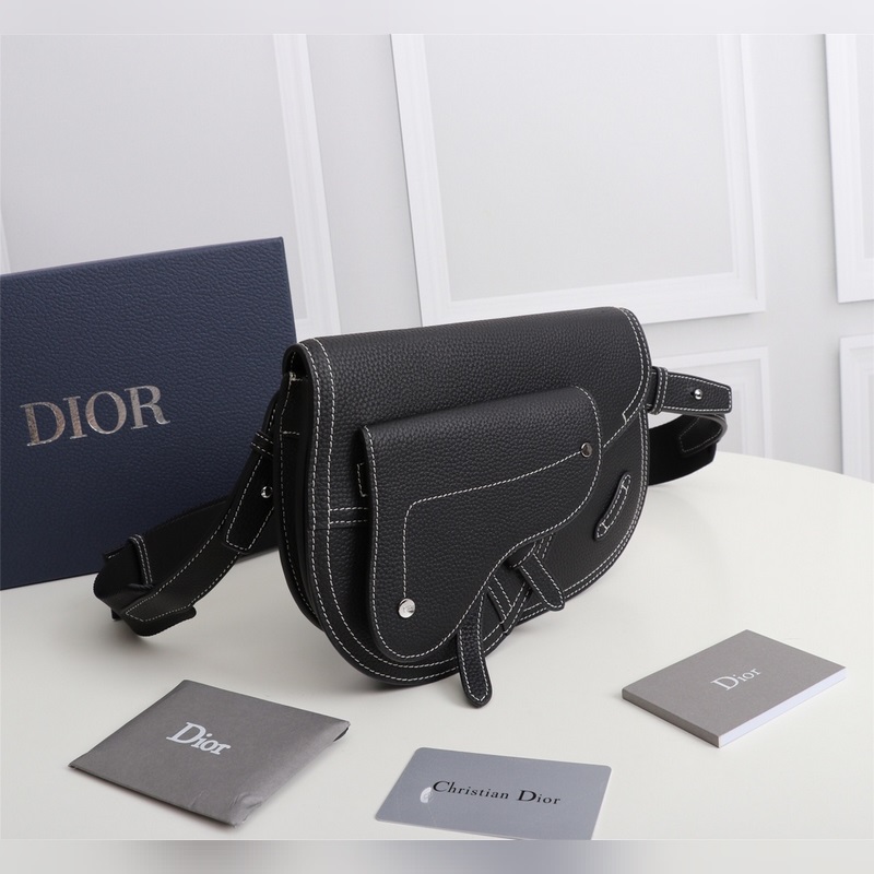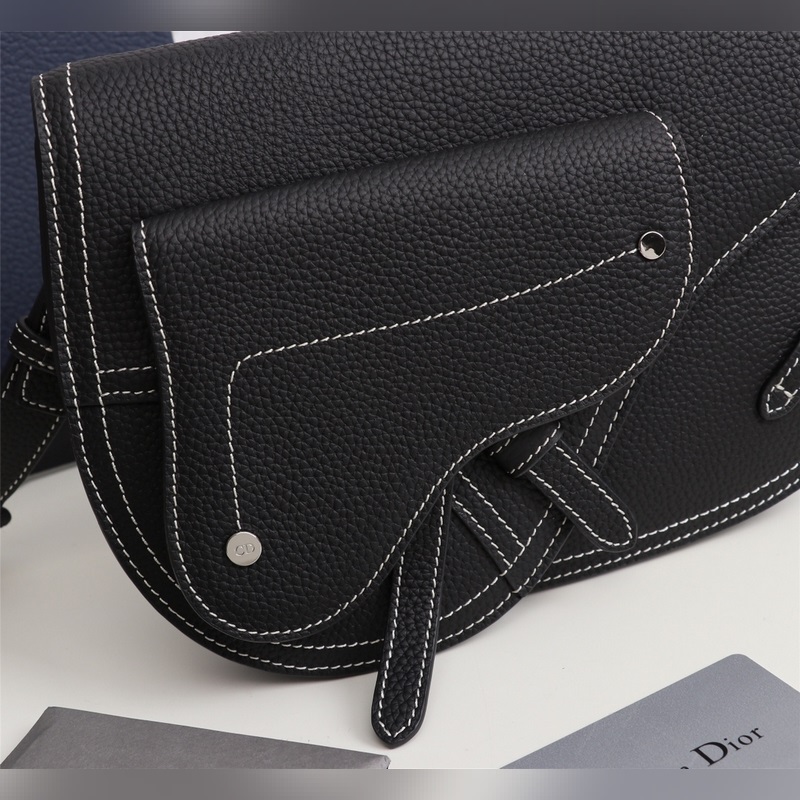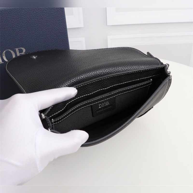 Dior Miesten SATTULA Miesten Crossbody laukku/Rintalaukku Malli: 1ADPO095YKY_H28E (musta nahka ja valkoinen viiva)