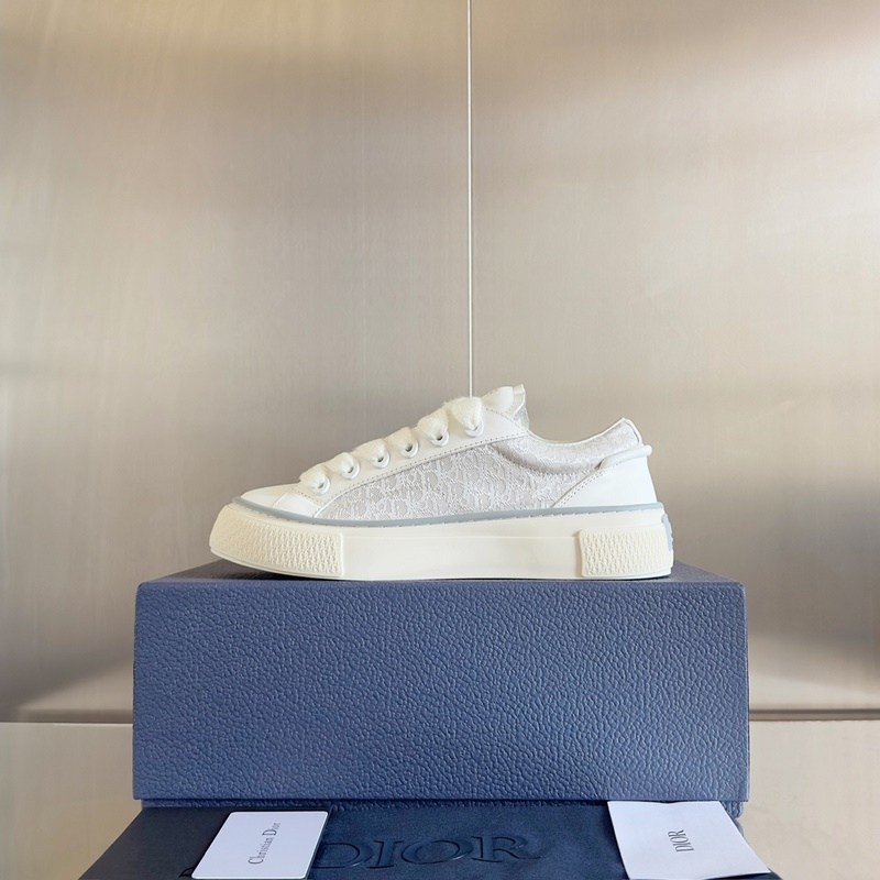 Alkuperäinen osto, kehitys ja tuotanto Tämä B33-lenkkari on syksyn 2023 uutuustuote, joka tulkitsee klassisen tenniskengän tyylikkäällä siluetilla, joka korostaa paksua siluettia. Valmistettu laivastonsinistä ja valkoisesta jacquard-kankaasta, koristeltu Oblique-printeillä, yhdistettynä mokkanahkapaneeleihin, ainutlaatuinen pehmustettu kieleke on koristeltu Diorin kohokuvioidulla logolla, yhdistettynä laivastonsinisiin mohairleveisiin nauhoihin ja mattapintaisiin messinkisilmukoihin, joissa on sama sävy. Valkoinen Dior Oblique -kuvioinen kumipohja, jonka takana kontrastivärinen Dior 30 Avenue Montaigne -logo korostaa tyyliä. Voi lisätä muotia rentoon ilmeeseen