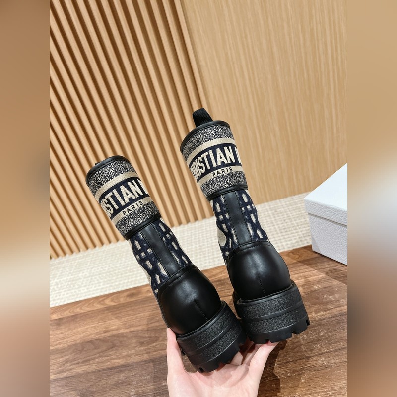 Valmistettu mustasta teknisestä kankaasta ja lehmännahasta, ne voidaan helposti pukea päälle ja pois. Dior Book Tote -käsilaukun inspiroima toppi on koristeltu kaksivärisellä “Christian Dior” -logolla.