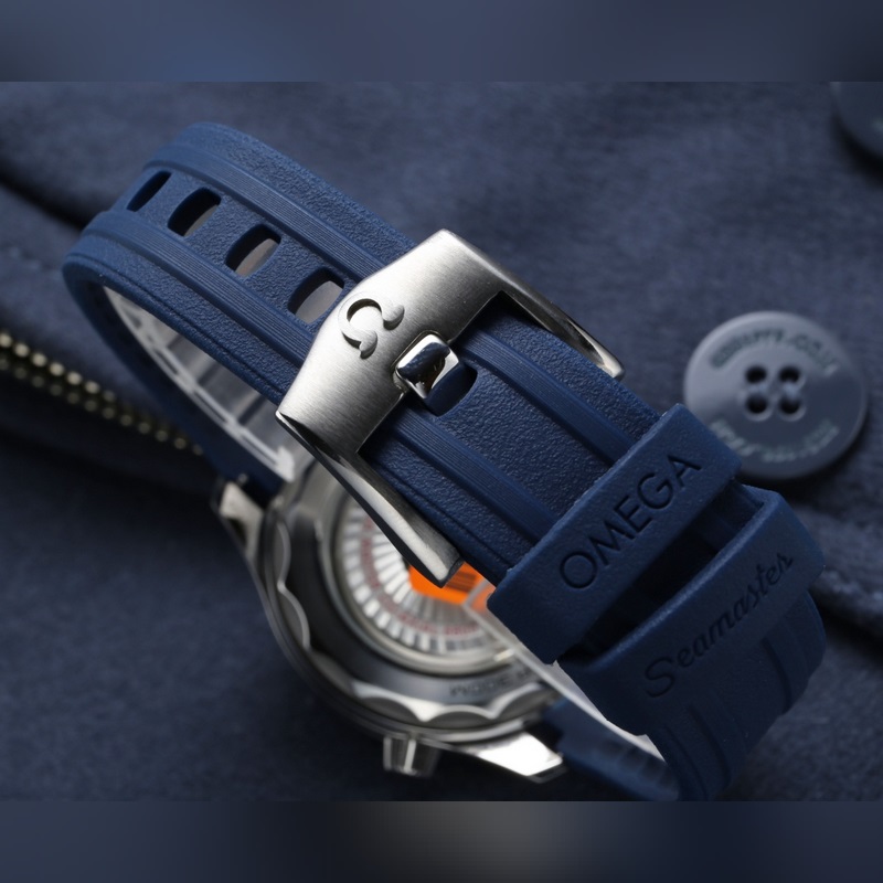 Ranna ja solki on kiillotettu 316L ruostumattomalla teräksellä ja teräsranneke on kiinnitetty ruuveilla. Siinä on tuotu sammakkoliimahihna ja ruostumattomasta teräksestä valmistettu hihna, jotka osoittavat täydellistä laatua, ja se on yhdistetty ainoaan alkuperäiseen samantasoiseen Omega-joustosoljeen. Se on superarvo samalla tasolla. Vahvista ainutlaatuiset yksityiskohdat