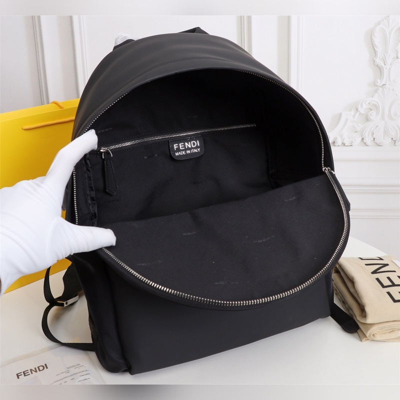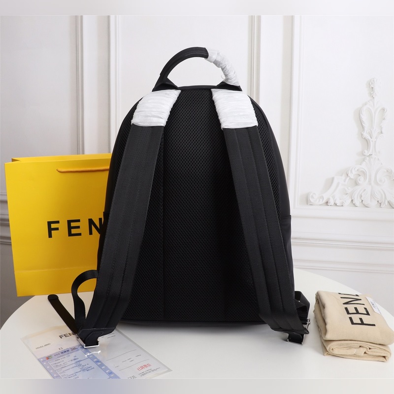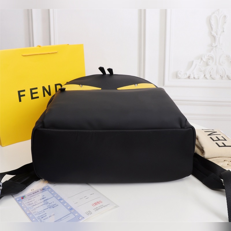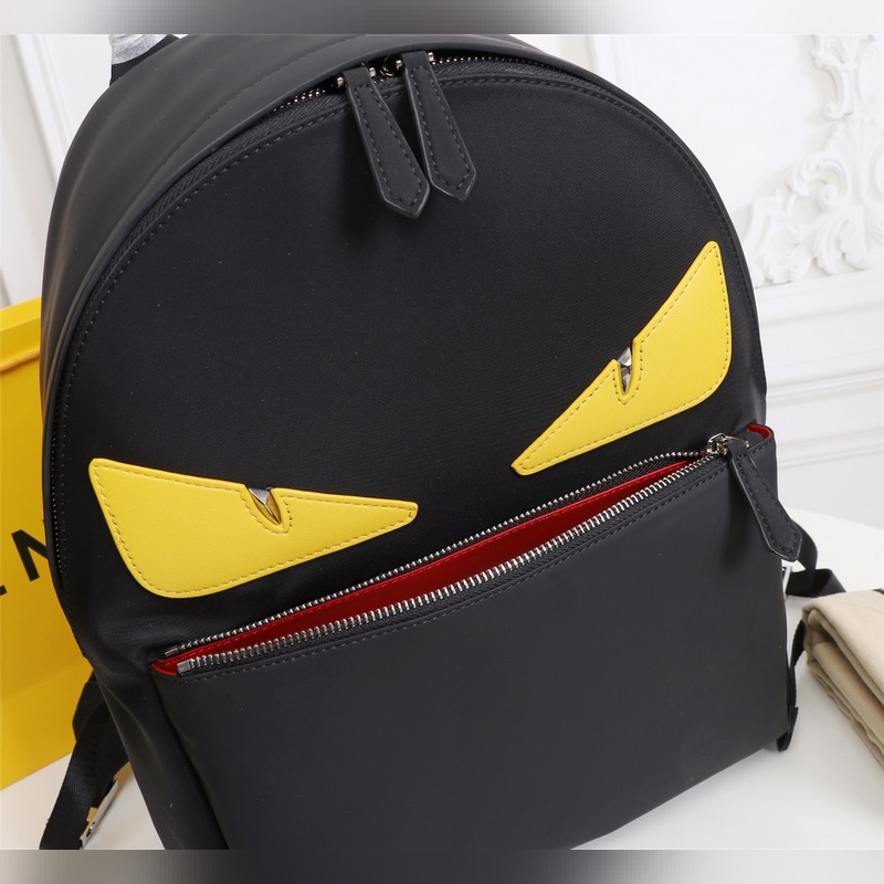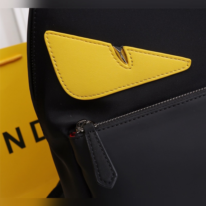 Fendi kangas- ja nahkareppulähetys Fendi pieni hirviö reppu päivitetty versio alkuperäinen laatu jokainen yksityiskohta on sama versio repusta nylon liitos musta nahka reppu upotettu BAG BUGS silmäkuvion muoto kaksinkertainen vetoketju tasku matkatasku nahka tasku ja kahva hengittävä tekniikka meshpperissä