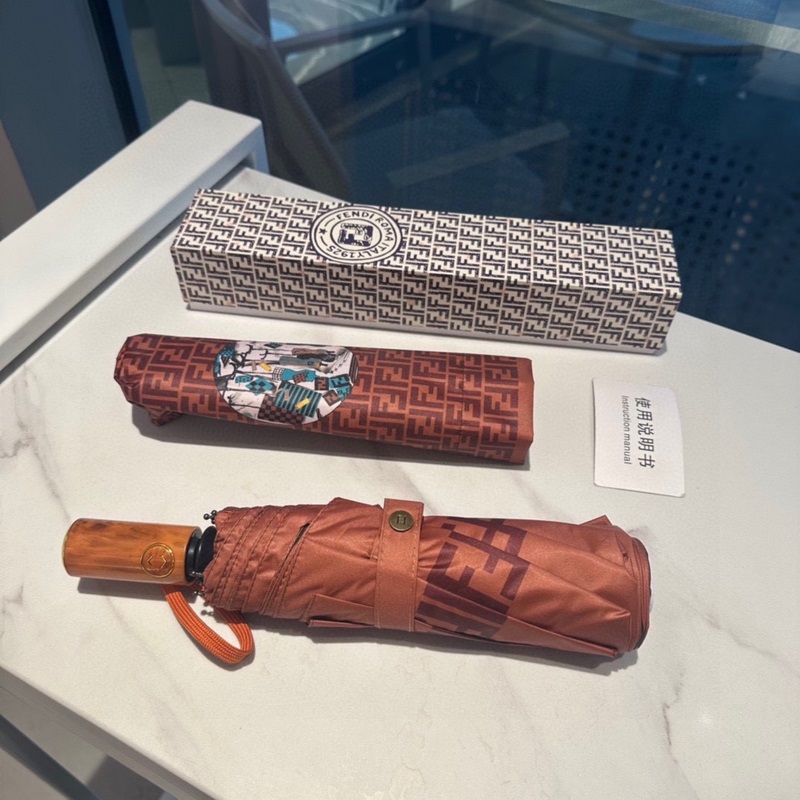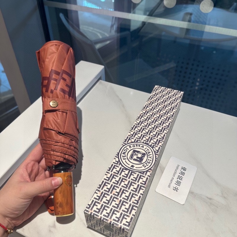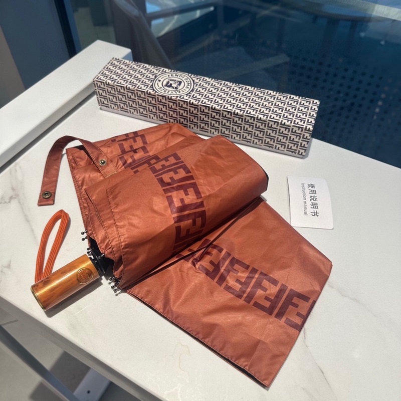 FENDI uusi painettu kolminkertainen automaattinen taitettava sateenvarjo Uusin kuuma tuote vuonna 2023 Alkuperäinen OEM-laatu Ensimmäisen sukupolven 210T iskukangas auringonpitävä ja vettä hylkivä tekniikka Estää 99% UV-säteistä suoraan sateenvarjon pinnalle Estää kesän auringonpolttaman ja virkistävän matkan Valmistettu alumiiniseoksesta ja kätevästä tuulenkestävyydestä ja lasikuiduista.
