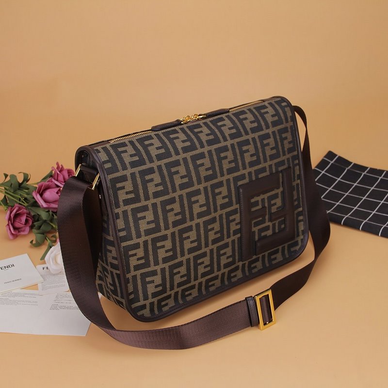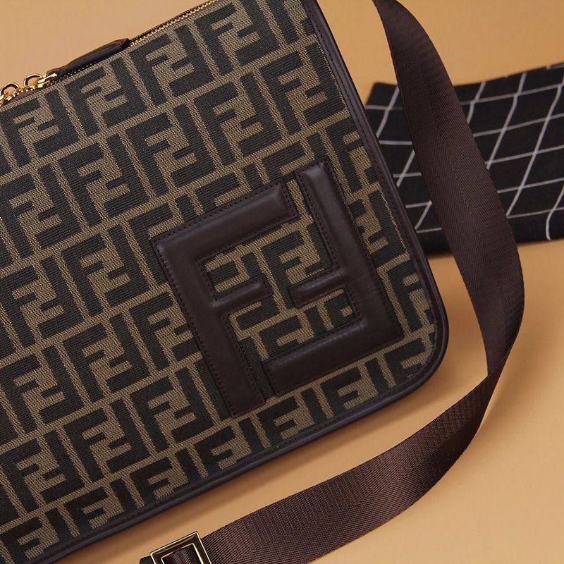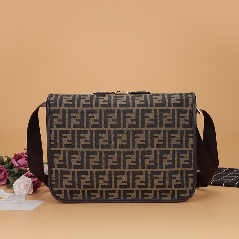 Koko: 33×24×14 Klassinen miesten crossbody laukku Big F letter -kahvikangas on taas varastossa, isolla kaappitilalla, klassinen tupla-F on palannut ja taas kuuma Nro: MX9618840