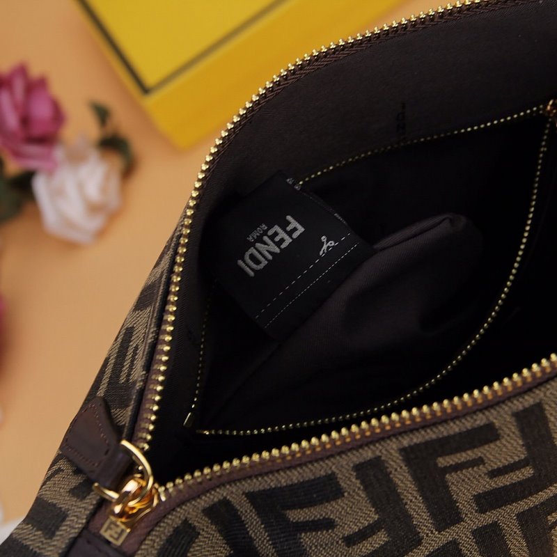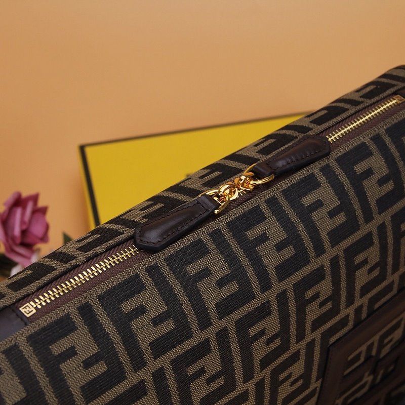 FENDI Big F -kangas miesten laukku Malli: 6512 (pieni): ruskea kangas ruskealla nahalla