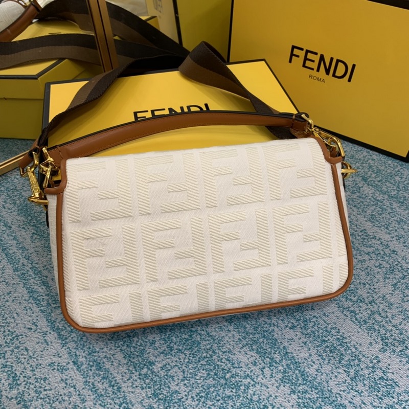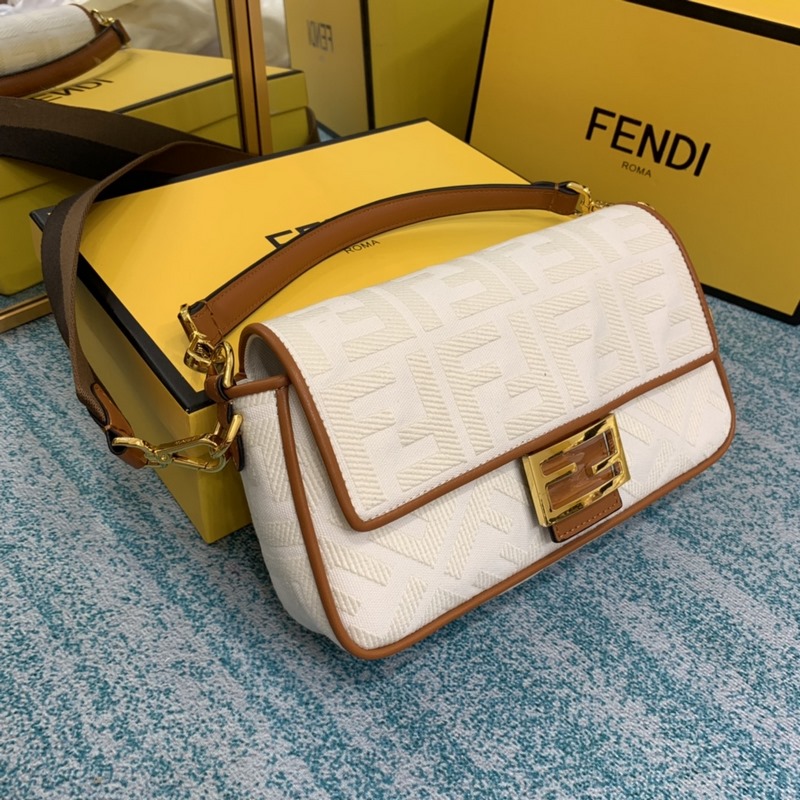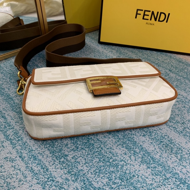 FENDI:n ikoninen Baguette keskikokoinen käsilaukku läppäkuvioinnilla ja FF-magneettilukolla