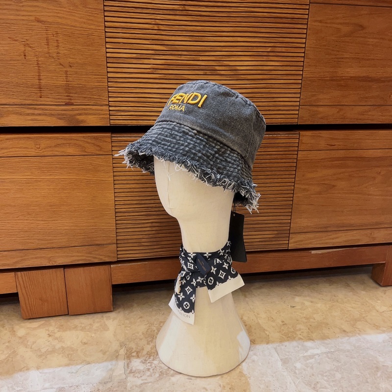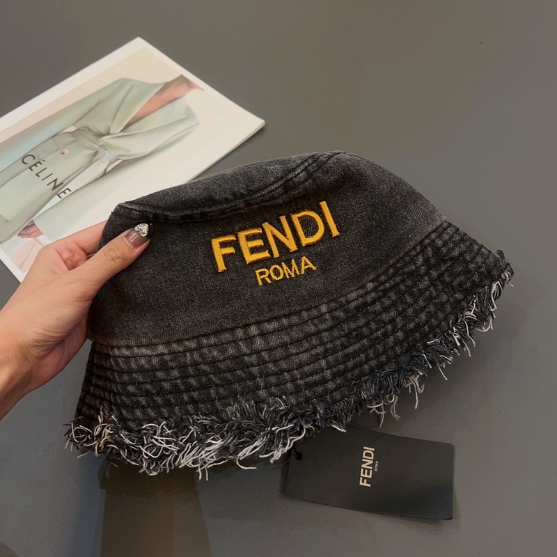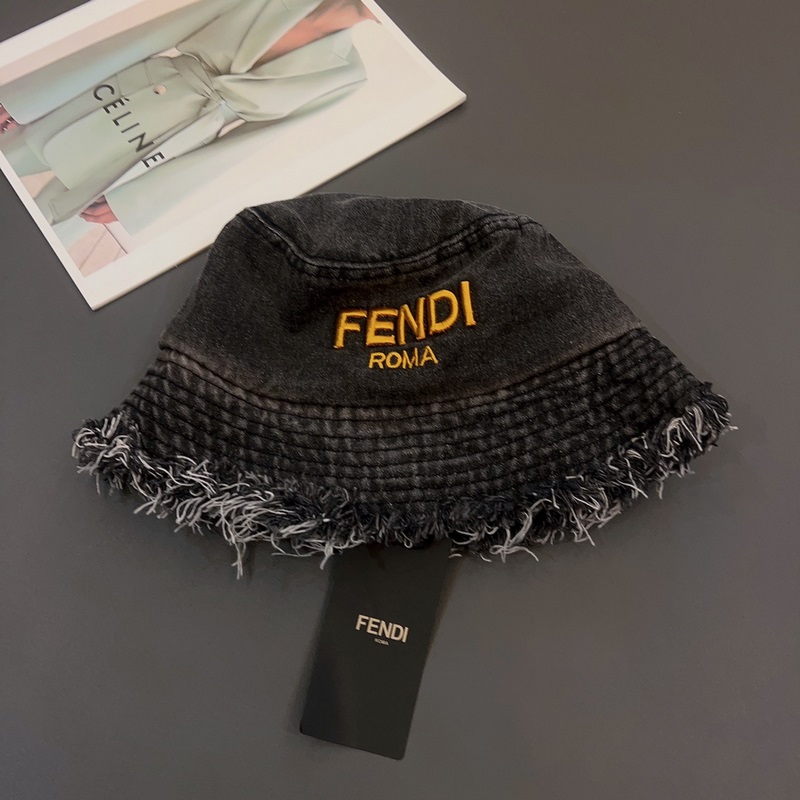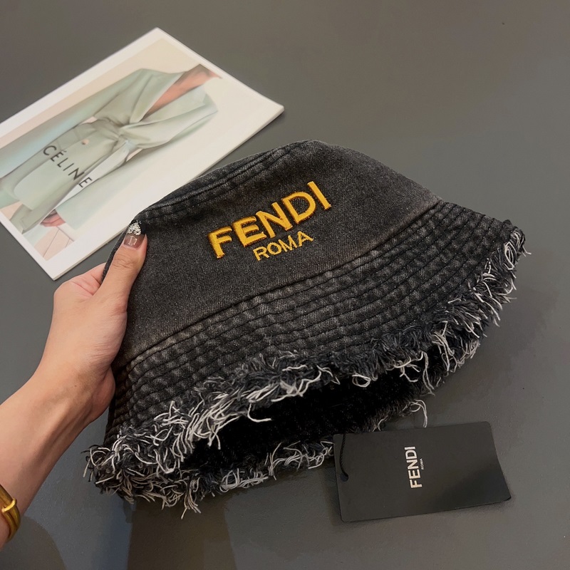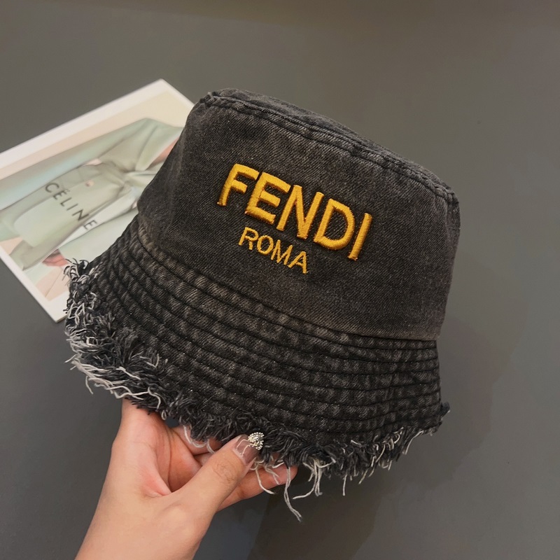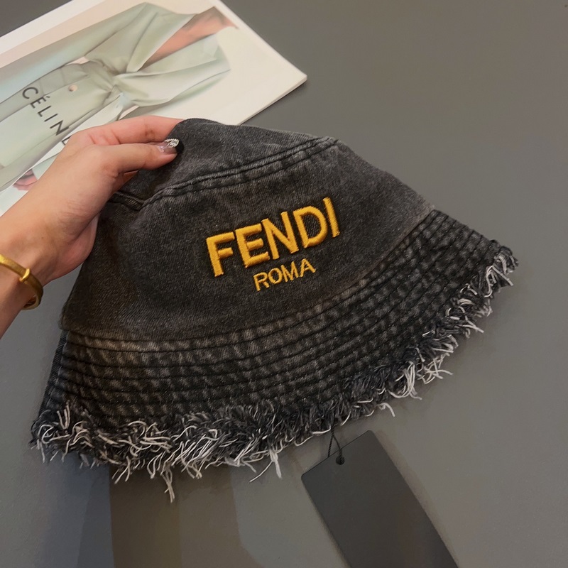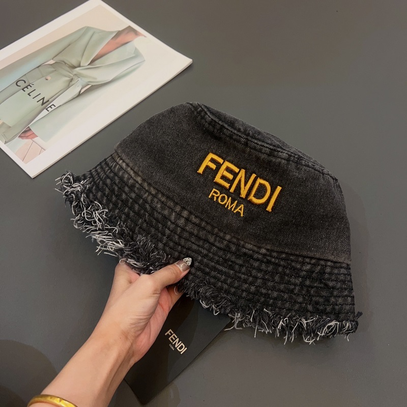 FENDI-Uuden tyylinen kalastajahattu, lentävälierinen denim aurinkohattu, taitettava, pään ympärysmitta 57cm