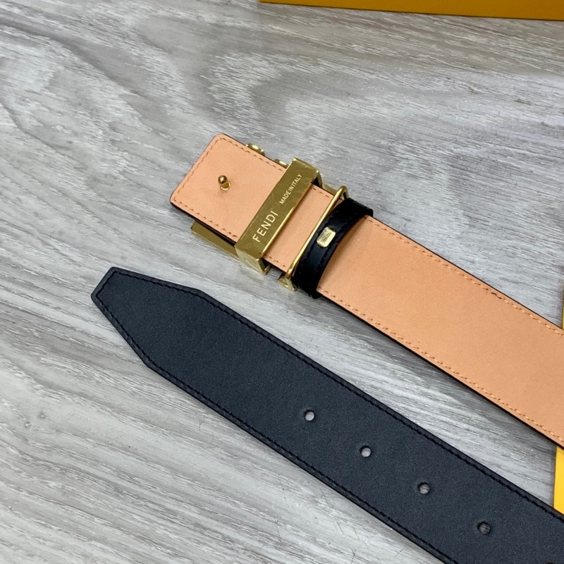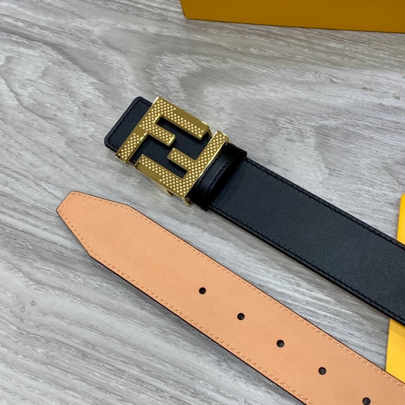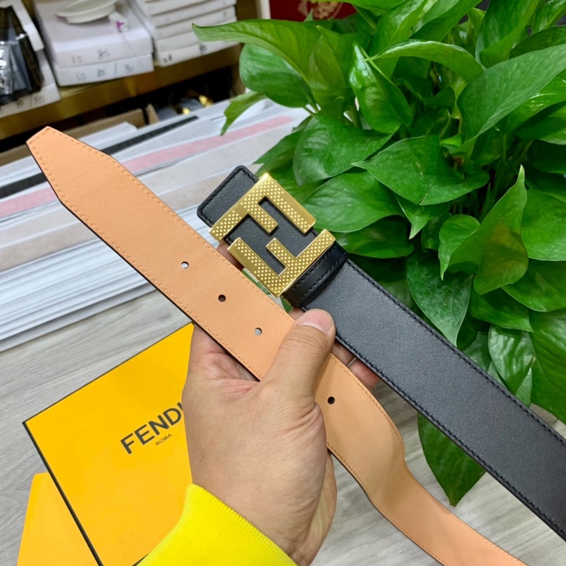 FENDI counter samantyylinen 3,8 cm leveys kaksipuoleisesta karvakerroksisesta lehmännahasta klassisella FF-terässoljella miesten vyö trendikäs ja muodikas rento ja monipuolinen laadunvarmistus