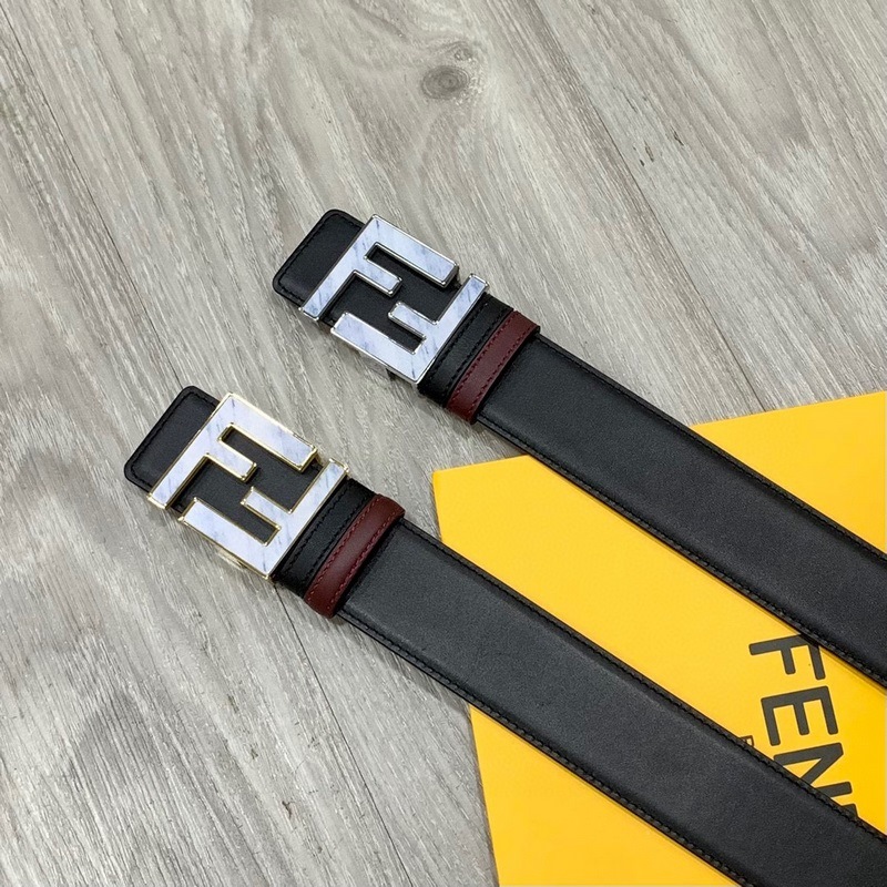 FENDl Fendi kaksipuolinen maahantuotu vasikannahka ruteeni-palladium galvanoidulla FF-soljella