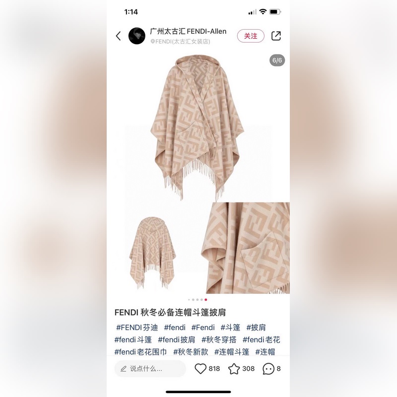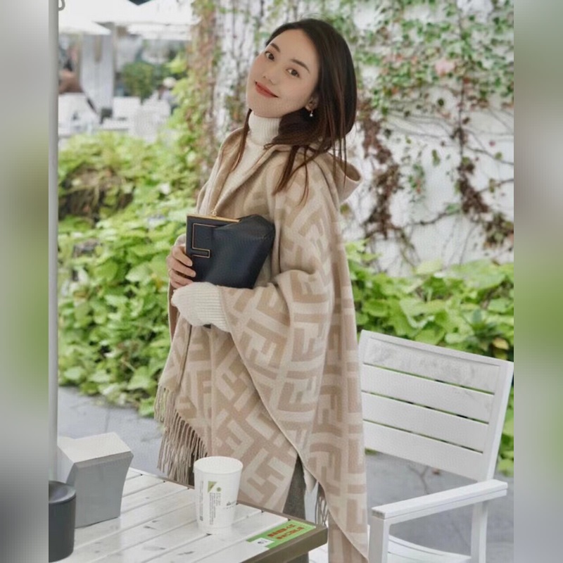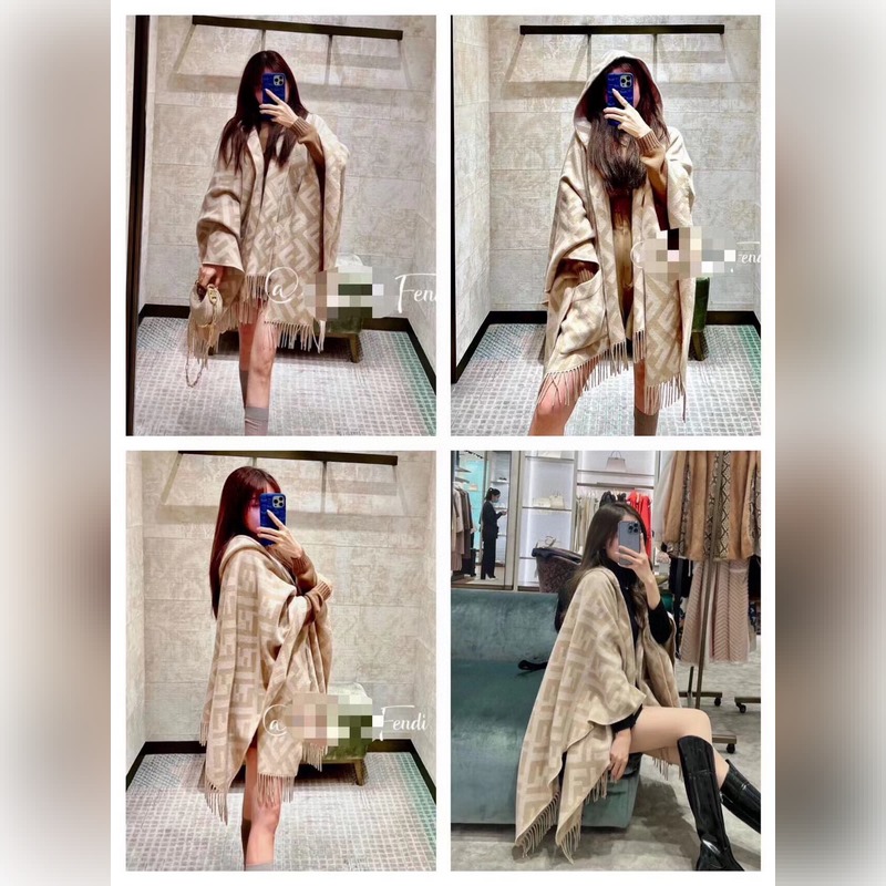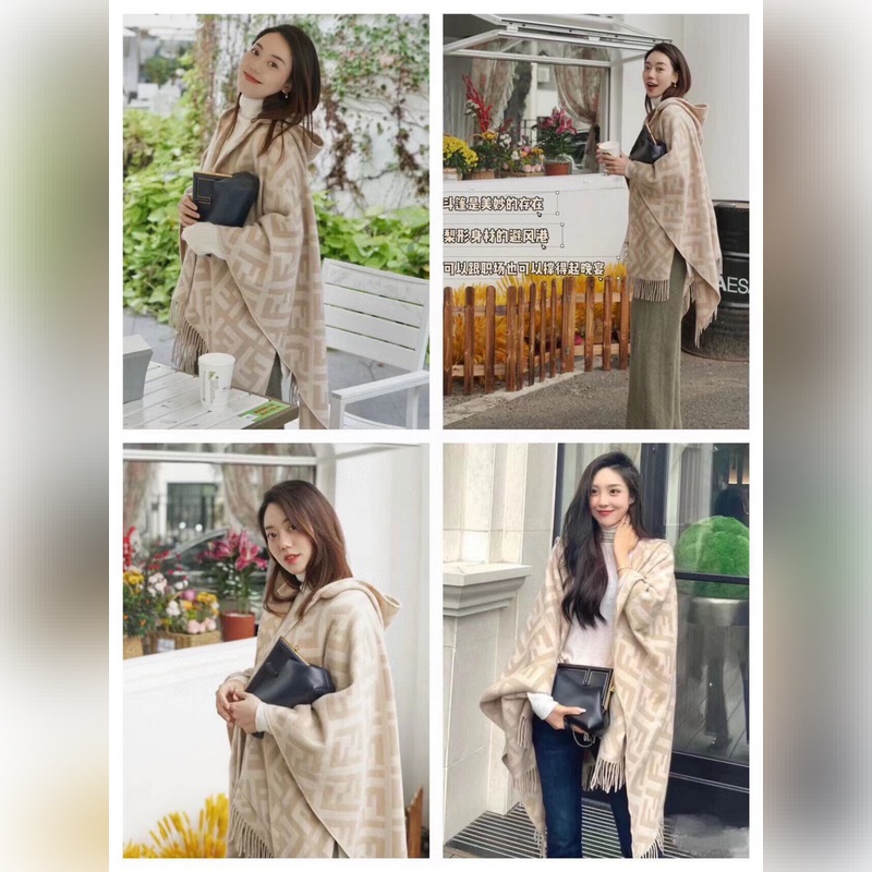 Fendi rajoitettu erä hupullinen viittahuivi Tämä FF-viitta on Fendin uusi syksyn ja talven rajoitettu painos. Siinä on hupullinen muotoilu ja suuret taskut, mikä tekee siitä enemmän auraa. Fendin viitan muotoilu saa jalat näyttämään pidemmiltä. Sitä voidaan käyttää viittana, viittana tai toppina. Muoto on erittäin voimakas. Tosiasia on todella hyvä. Käsityötaito on erittäin vaikeaa. Kokonaisuus on myös erittäin paksu ja raaka-aineet erittäin korkeat. Paksu ja pehmeä