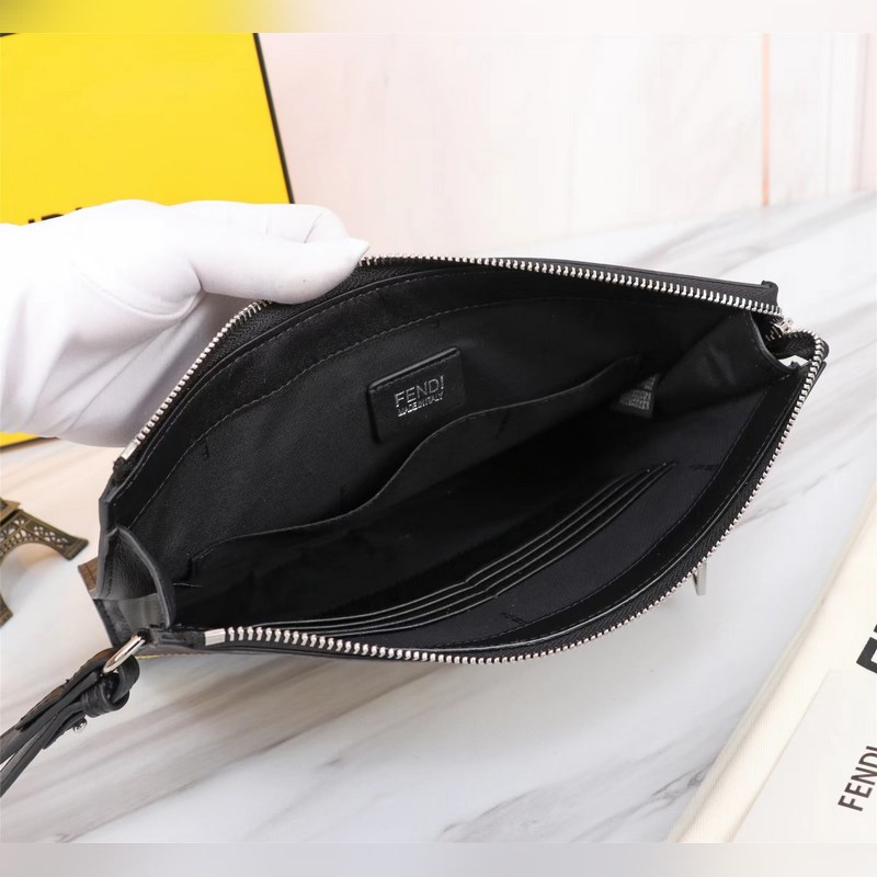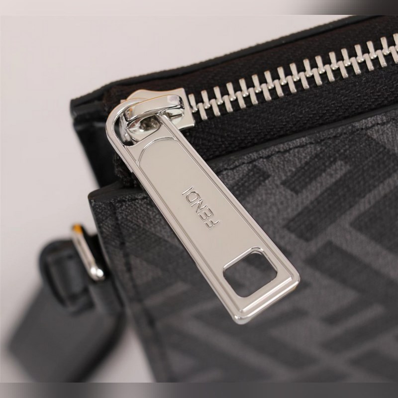 FENDI päivitetty versio Little Monster -miesten laukkusta, valmistettu tuodusta ensimmäisen kerroksen Nappan lehmännahasta, italialainen nahkaverhoilu metallisilla silmämunoilla, täynnä elinvoimaa, sielullinen muotoilu, käytännöllinen toiminto, 6 cm leveys alareunassa, useita korttipaikkoja: musta