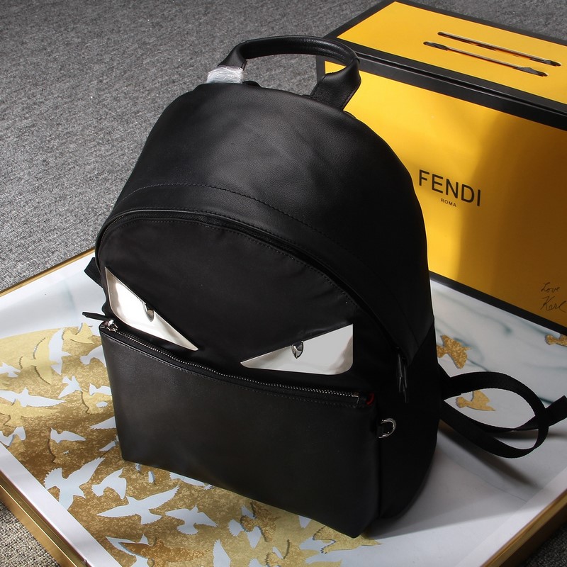 FENDI nylon-tilkkukerroksinen lehmännahkareppu