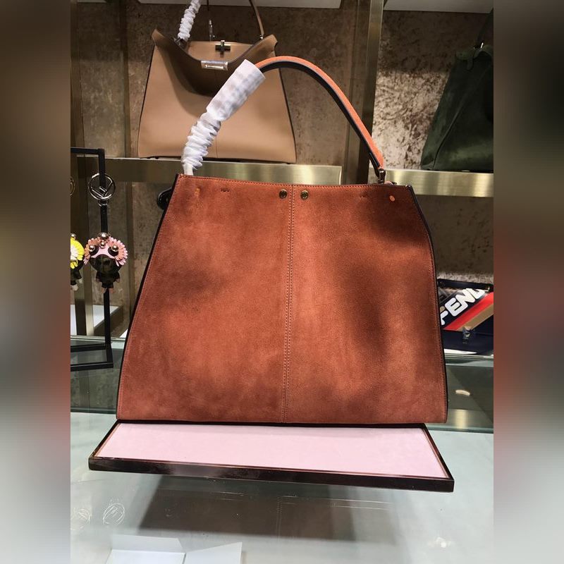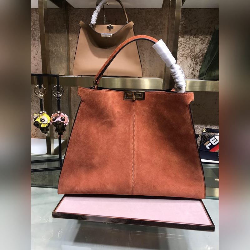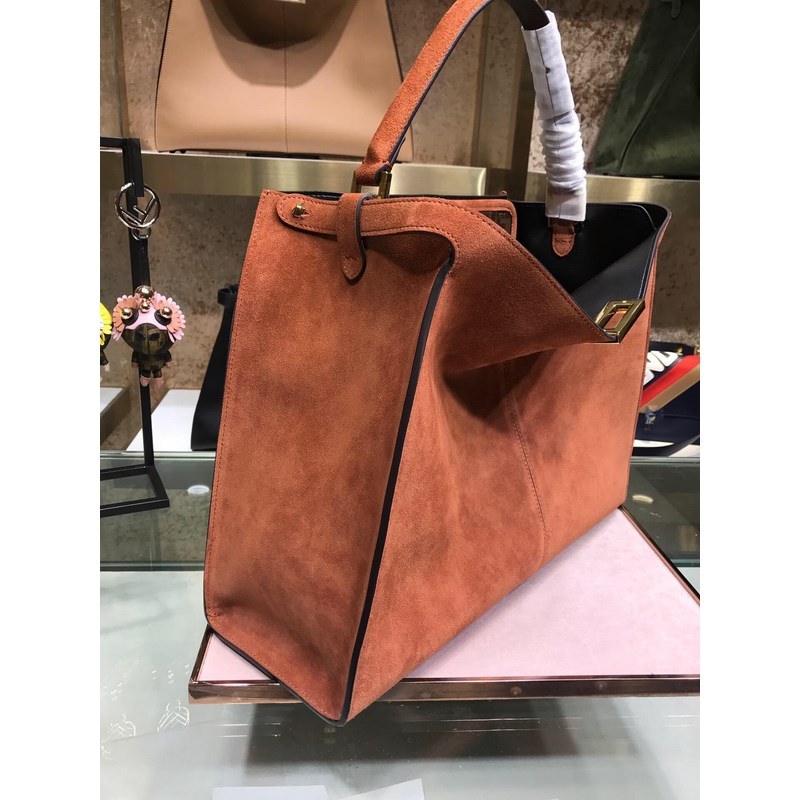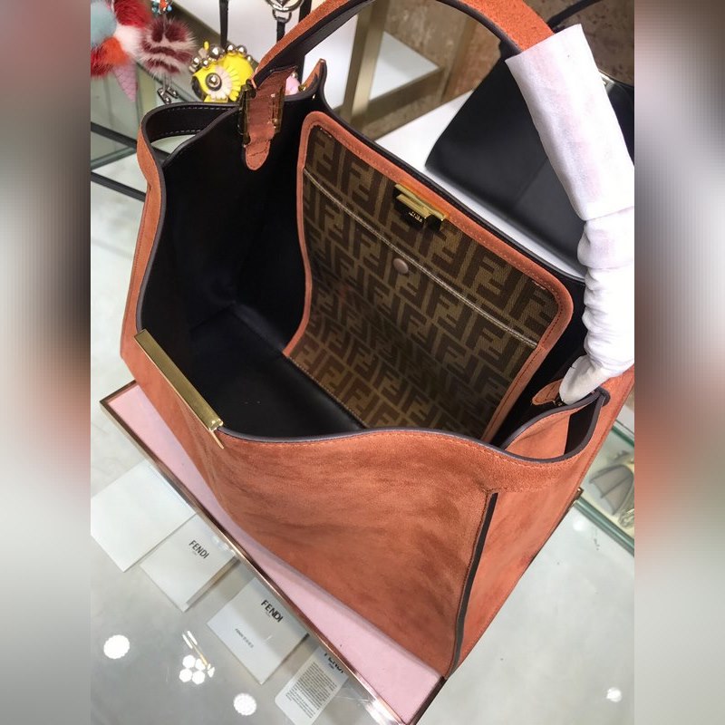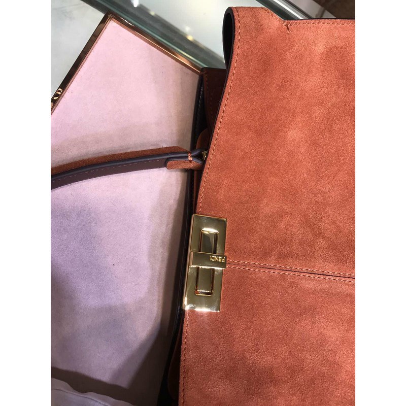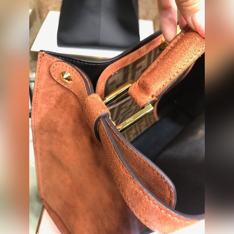 FENDI Peekaboo pehmeä mokkanahkakäsilaukku laadukkaalla viimeistelyllä
