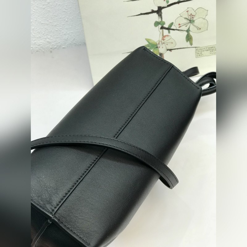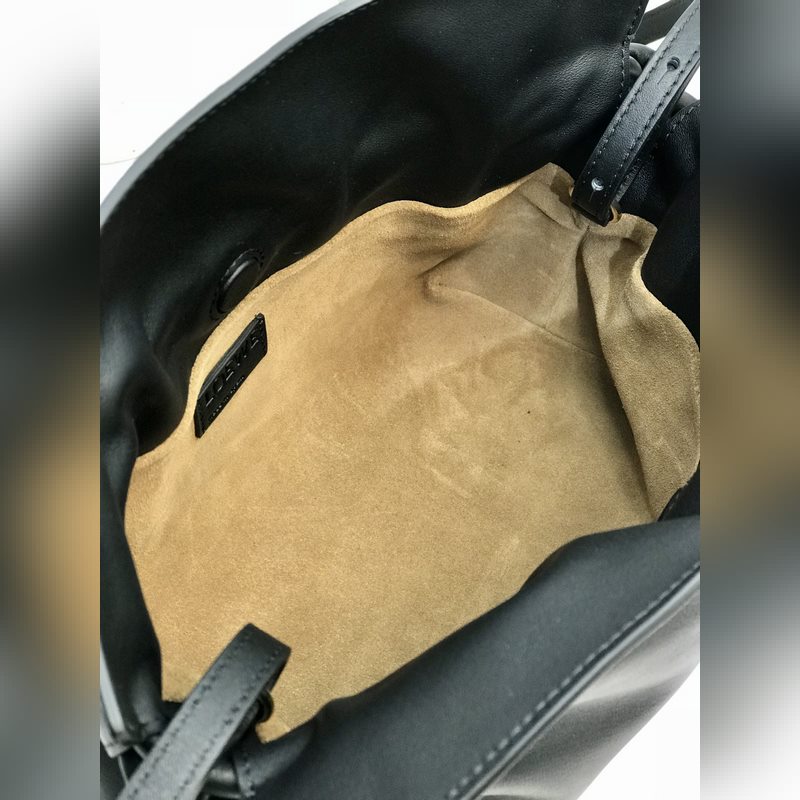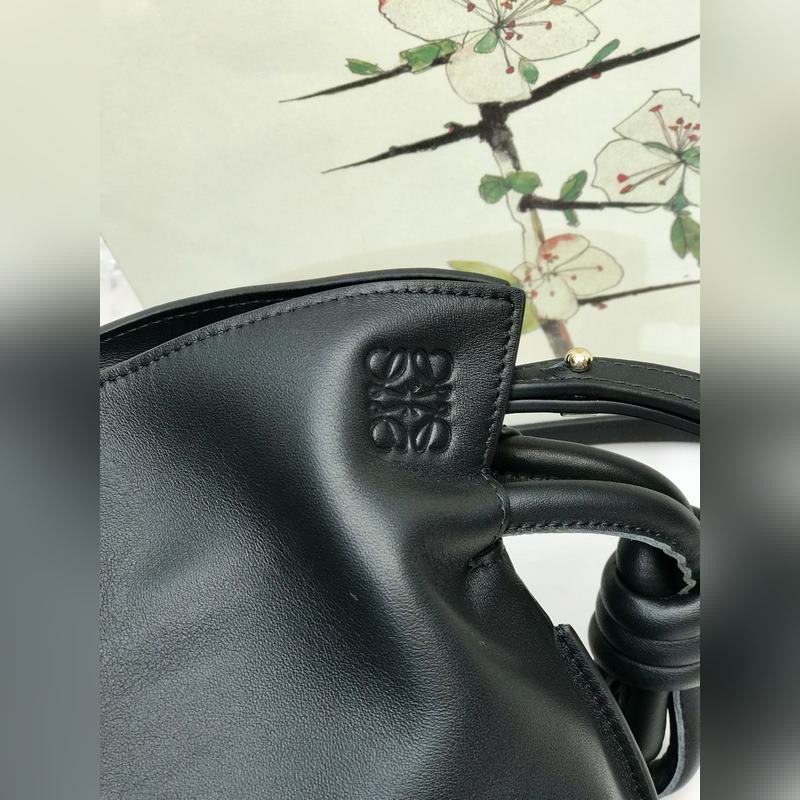Flamenco-mini onnenkassi mustana on valmistettu pehmeästä ja herkästä vasikannahasta, jossa on kiristysnyöri ja tunnusomainen kierretty solmu. Sitä voidaan kantaa olkapäässä, poikkivartalossa tai kädessä. Siinä on irrotettava ja säädettävä olkahihna, magneettinen solki ja mokkavuori. Mini mallinumero 10855, koko 22,5*18*9