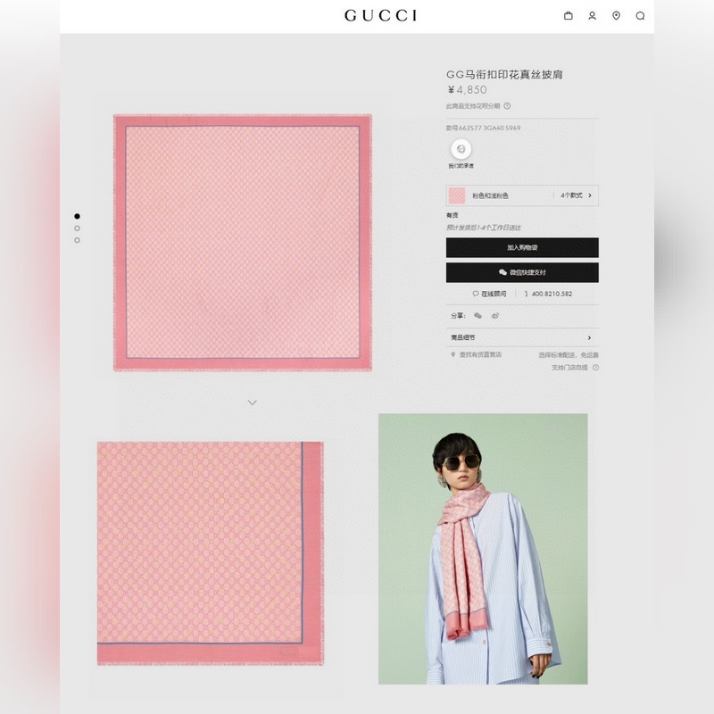 GG-kashmir-kashmir-neliöhuivi 90-prosenttisesti hapsutettu kashmir-kuvioinen neliömäinen huivi, jossa on käytetty klassista GG-kuviota, jossa on keltainen horsebit-printti ja yksivärinen reunus, joka osoittaa runsaan ja elegantin luonteen. GG-kuvio on kunnianosoitus brändin perustajan Guccio Guccin poikkeukselliselle kokemukselle, ja hevoskuvio korostaa merkin ratsastusalkuperää. Neliömäinen huivi: 140*140cm 100% kashmir neliöhuivi Italialainen luomus