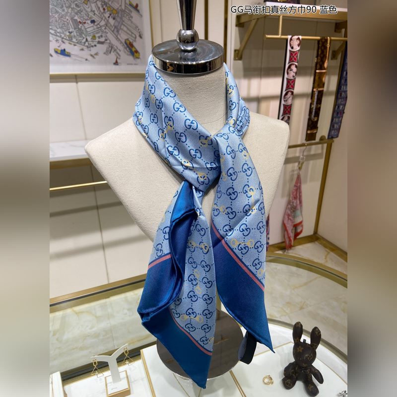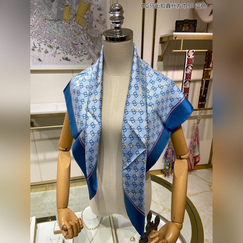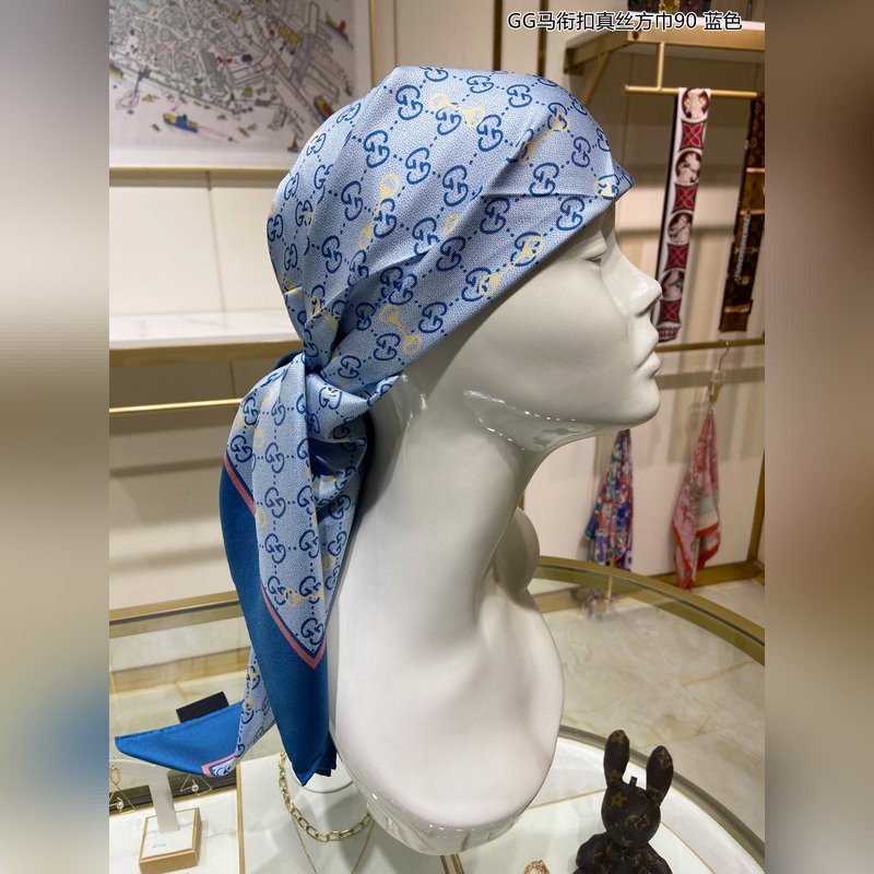 G Gucci GG Horsebit silkkisatiinipainattu huivi 90cm kaksipuolinen