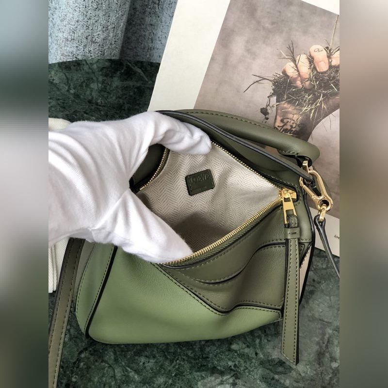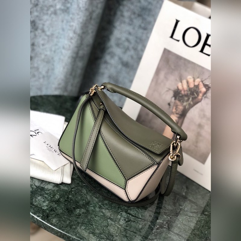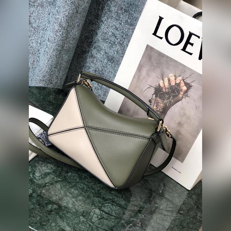 Loewe MINI PUZZLE geometrisen designin käsilaukku armeijanvihreä ja harmaa