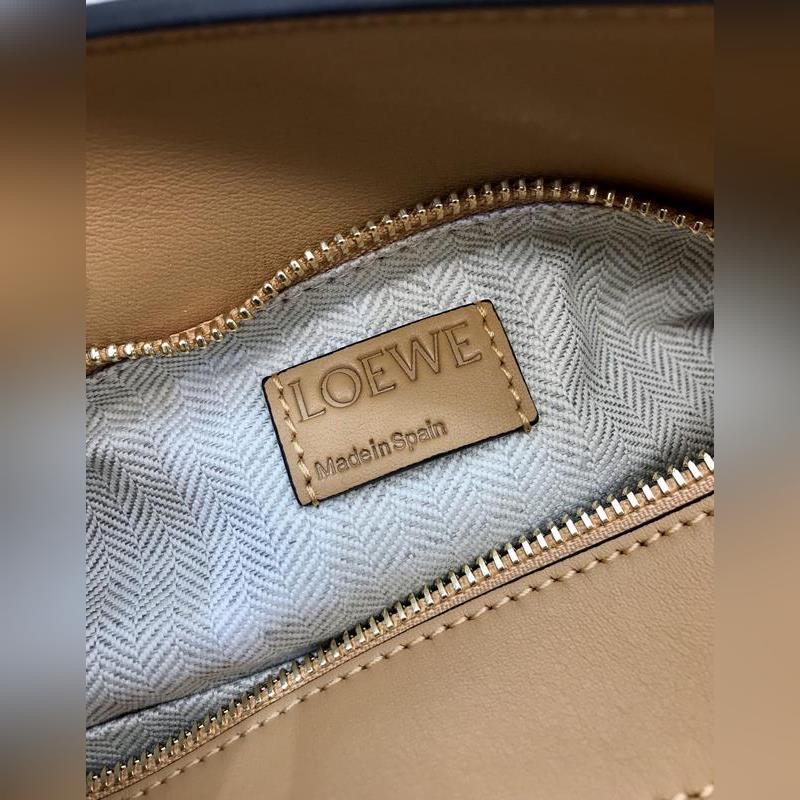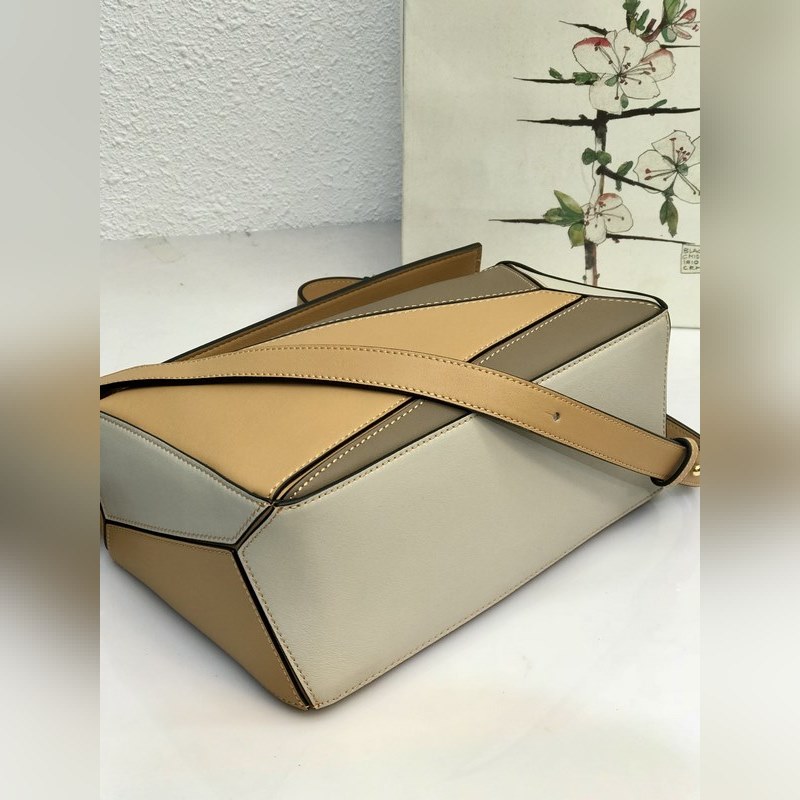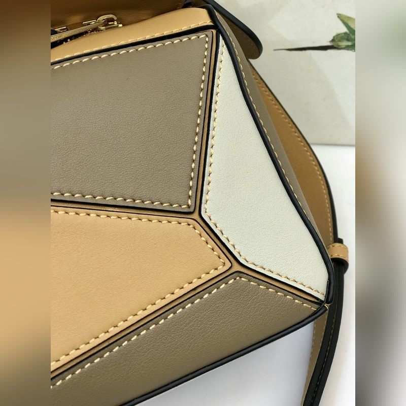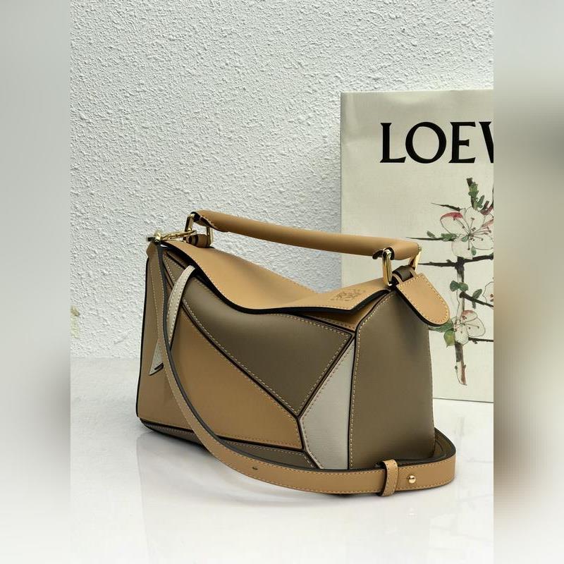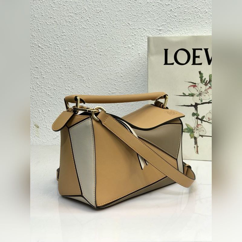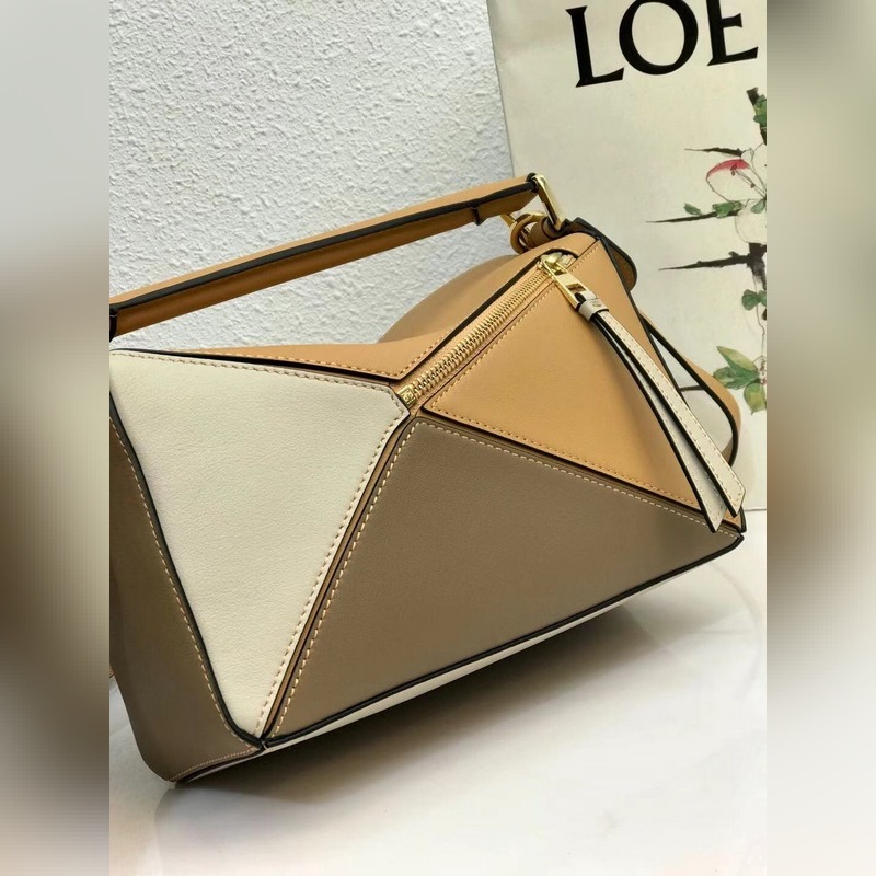 Loewe Brown/White Puzzle Geometric Design Kangaskassi Olkalaukku