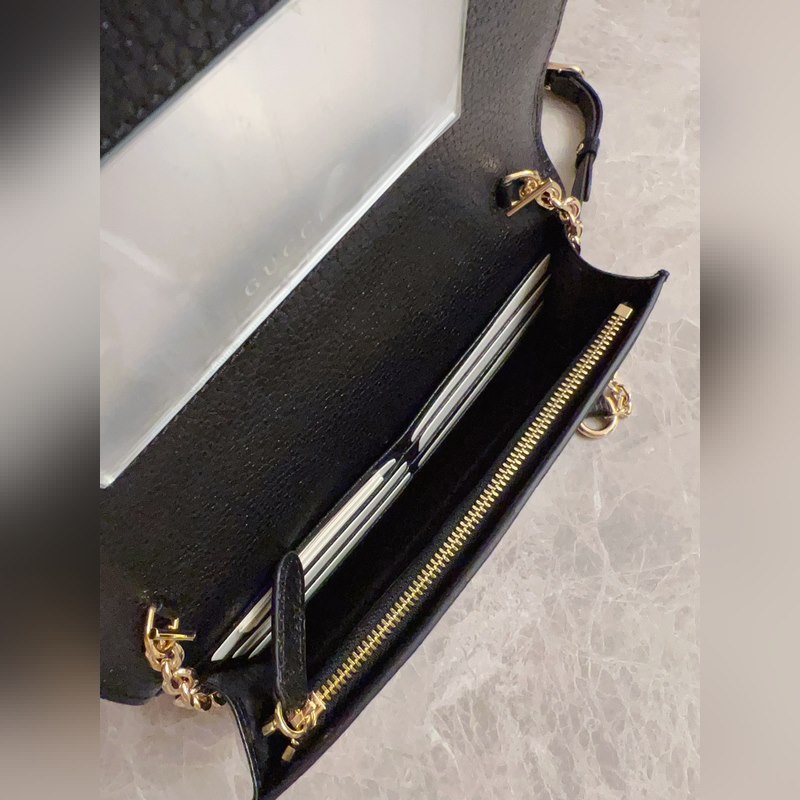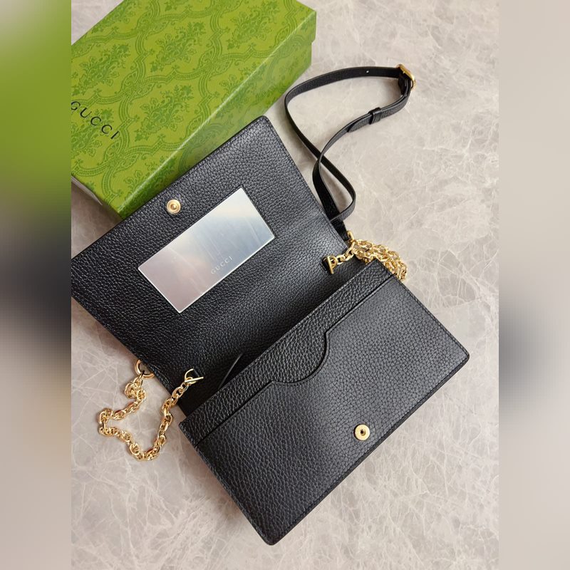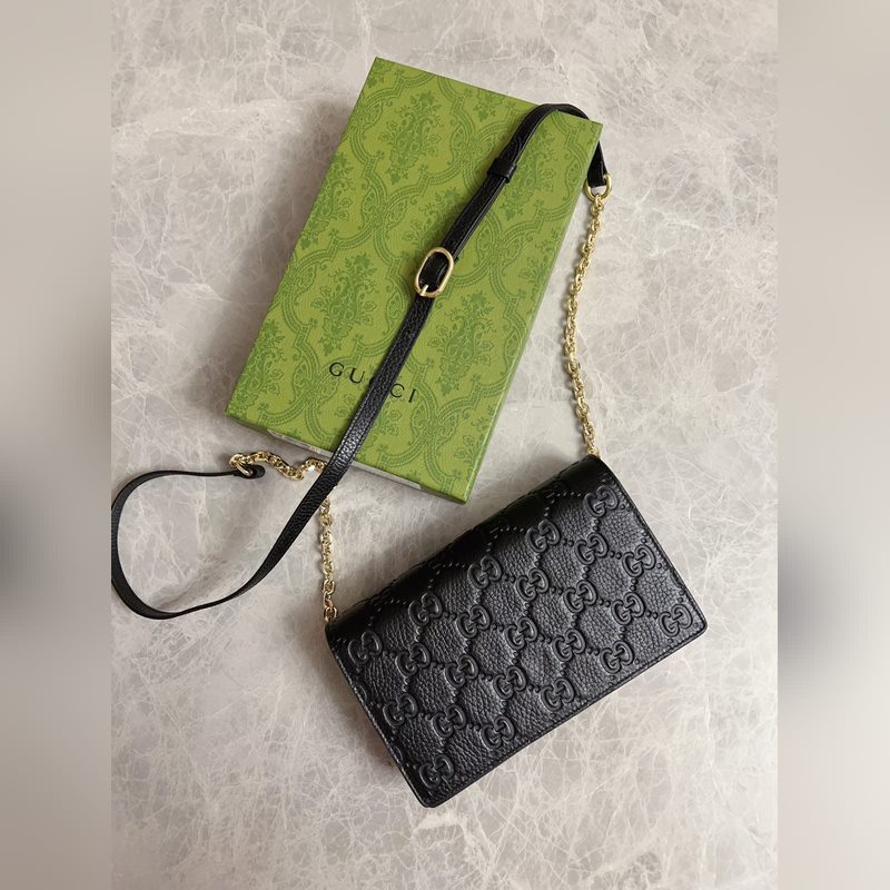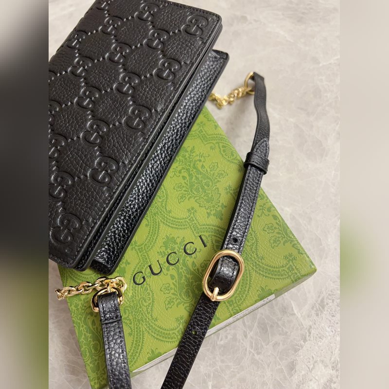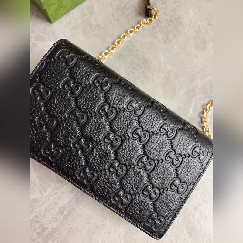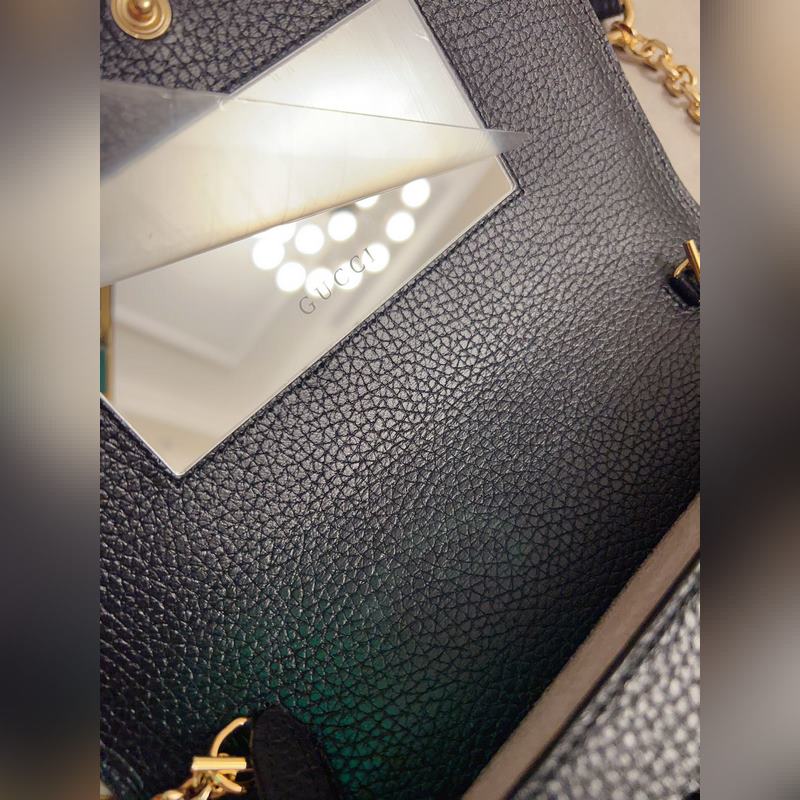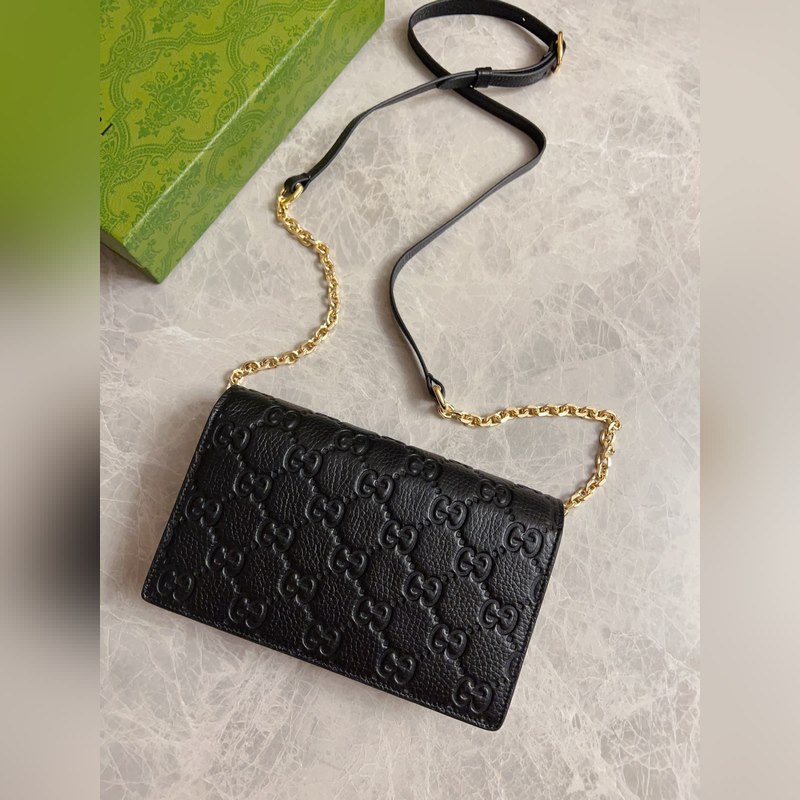 Uusi GG Emblem -sarjan superpehmeä litsi kohokuvioitu/täysnahkainen ketjulaukku malli: 818705, koko: 20×12,5×4