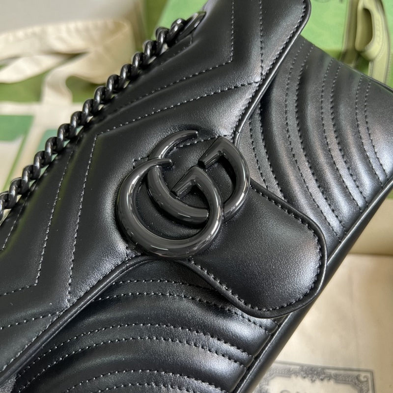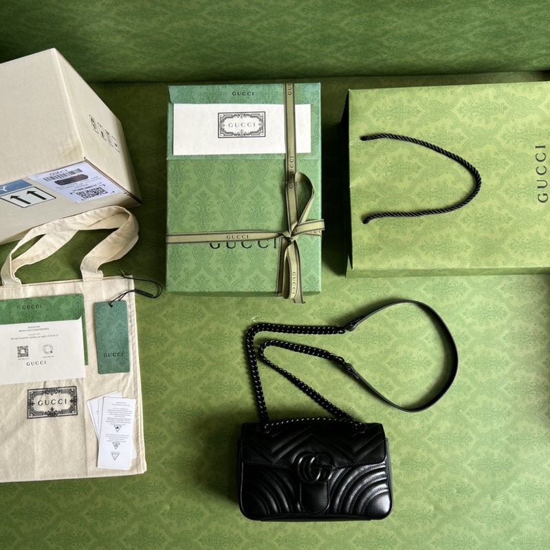 Oletko kerännyt tämän vastustamattoman laukun GG Marmont -sarja tyylikkäällä ja hienostuneella muotoilullaan on valloittanut monien tyttöjen sydämet, ja se on myös välttämätön esine maailmanlaajuisille kyvyille. Superalkuperäinen nahka (musta G-laitteisto tyhjiöpinnoitus, ei helppo haalistua)