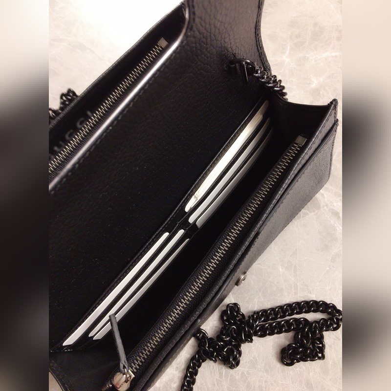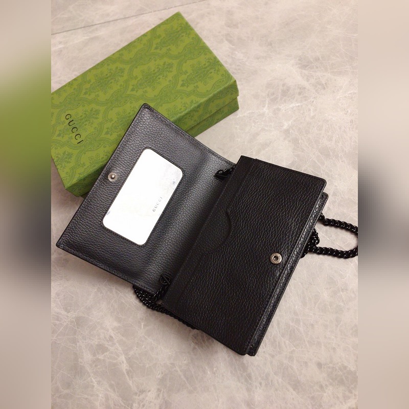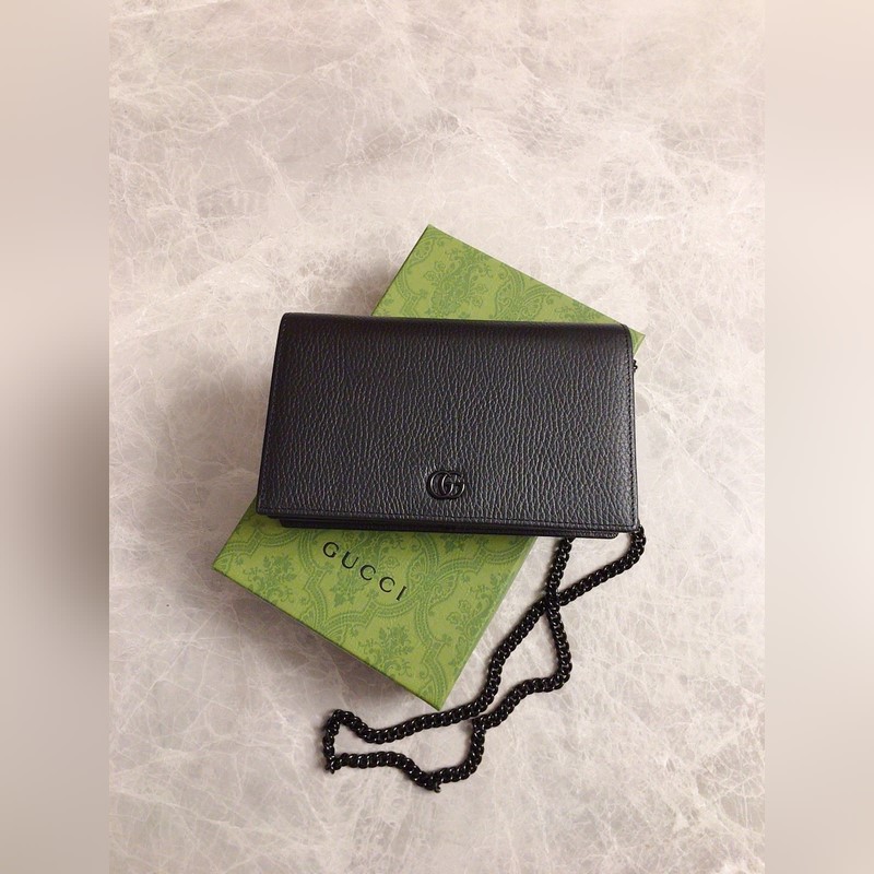 Huippuluokan alkuperäinen GG Marmont -sarjan ketjulompakko on valmistettu maahan tuodusta lehmännahasta pehmeillä sävyillä, ja samaa sävyä hartsimateriaalia on käytetty klassisen muotoilun uudelleen tulkitsemiseen ja yhdistämiseen yksisävyiseen värimaailmaan korostaen modernia muotityyliä. Vetoketjullinen sisätasku ja avoin tasku – kuusi korttitaskua Peili irrotettava ketjuolkahihna Malli: 497985, koko: 20*12,5*4cm