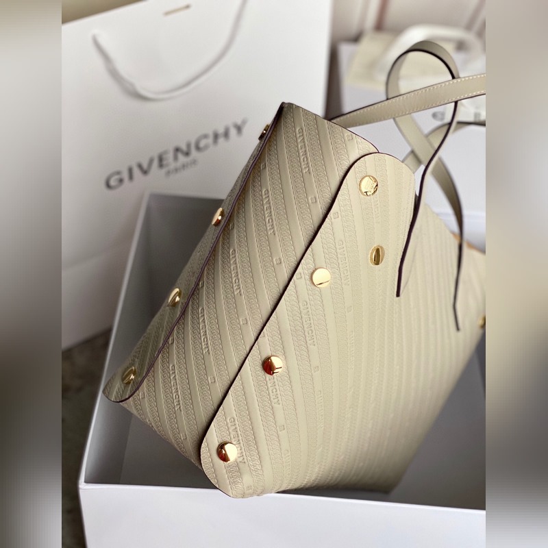 Givenchyn käsilaukku kohokuvioitu vasikkakangaskassi