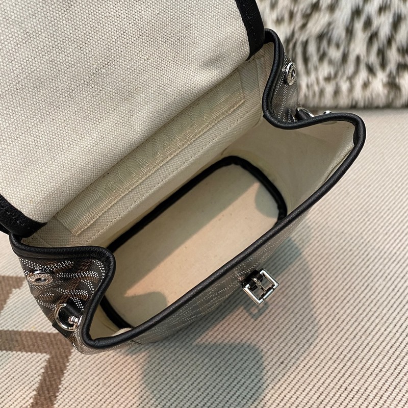 Alpin Minilaukku Käsintehty uusi toinen sukupolvi Goyardin perinteisen käsityötaidon ansiosta nerokkuus näkyy täysin yksityiskohdissa. Jotkut huolellisesti sijoitetut metallirenkaat ja nerokkaasti muotoillut lehmännahkaiset kahvat tekevät siitä käytännöllisen ja monikäyttöisen laukun, jota voidaan kantaa käsissä, olkapäällä tai vartalon poikki.