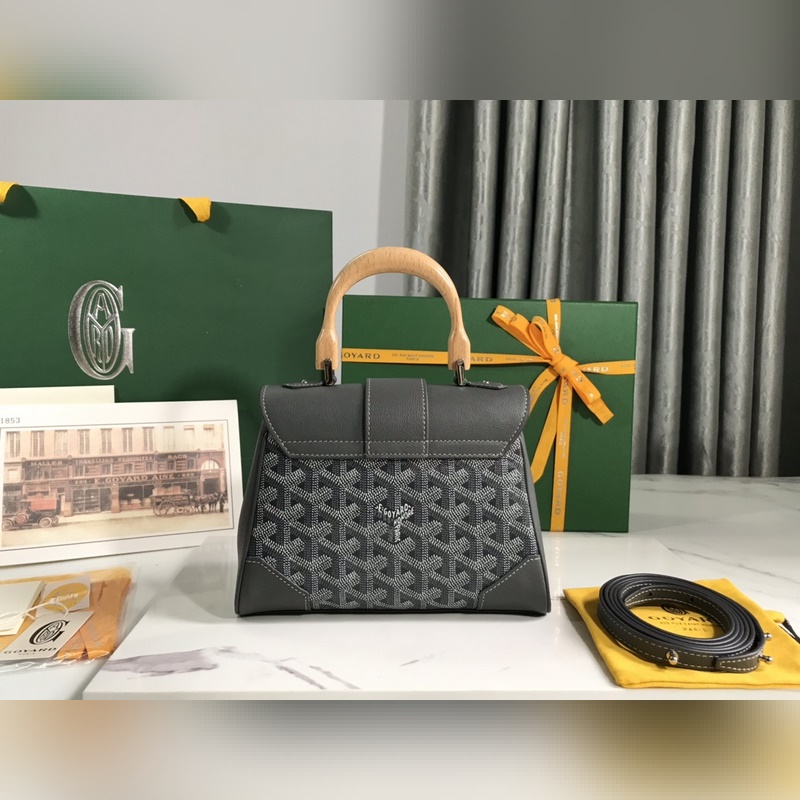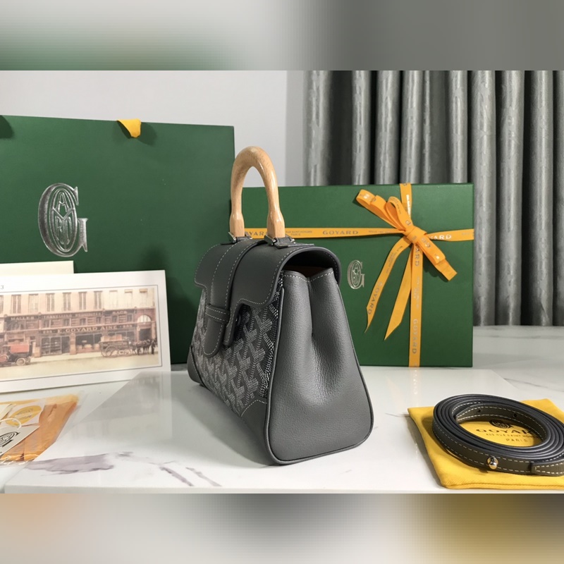 Goyard mini Saigon Saigon laukku Saigon laukku symboloi rakkautta, eleganssia ja hienostuneisuutta. Se on hillitty ja täydellinen työstö. Tämä laukku on tyylikäs, retro ja silti viehättävä. Se on tyyli, josta on vaikea kieltäytyä. Se on uskomattoman kevyt kantaa. Materiaali: puinen lasituskahva maahantuotulla lehmännahkakerroksella, koko: 20×14,5×9cm, kokonaiskorkeus puukahva mukaan lukien 25cm