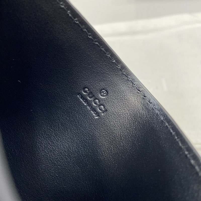 Uusi klassinen monogrammikuvio muuttaa arjen pienet esineet muodikkaaksi asusteeksi. Uudet tekstuurit ja viimeistelyt loistavat edelleen uudessa Gucci-sarjassa osoittaen jyrkkään elinvoimaa ja persoonallisuuden viehätysvoimaa. Tämä korttiteline on valmistettu tummanharmaasta ja mustasyistä lehmännahasta, ja sen ympärillä on GG-logo.