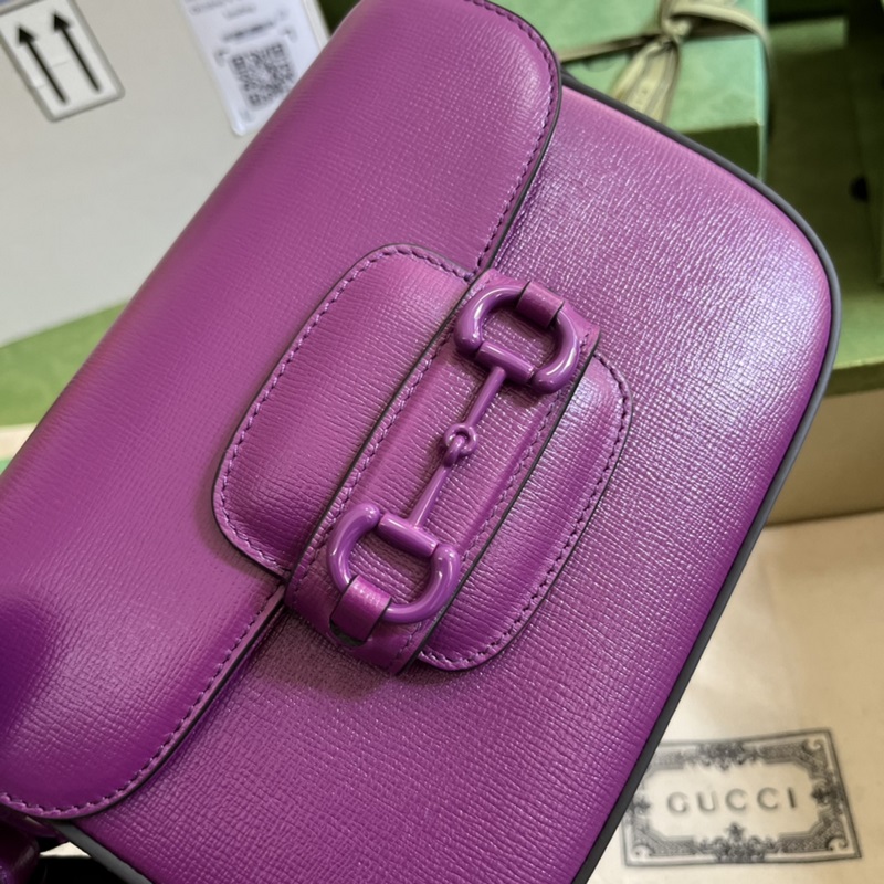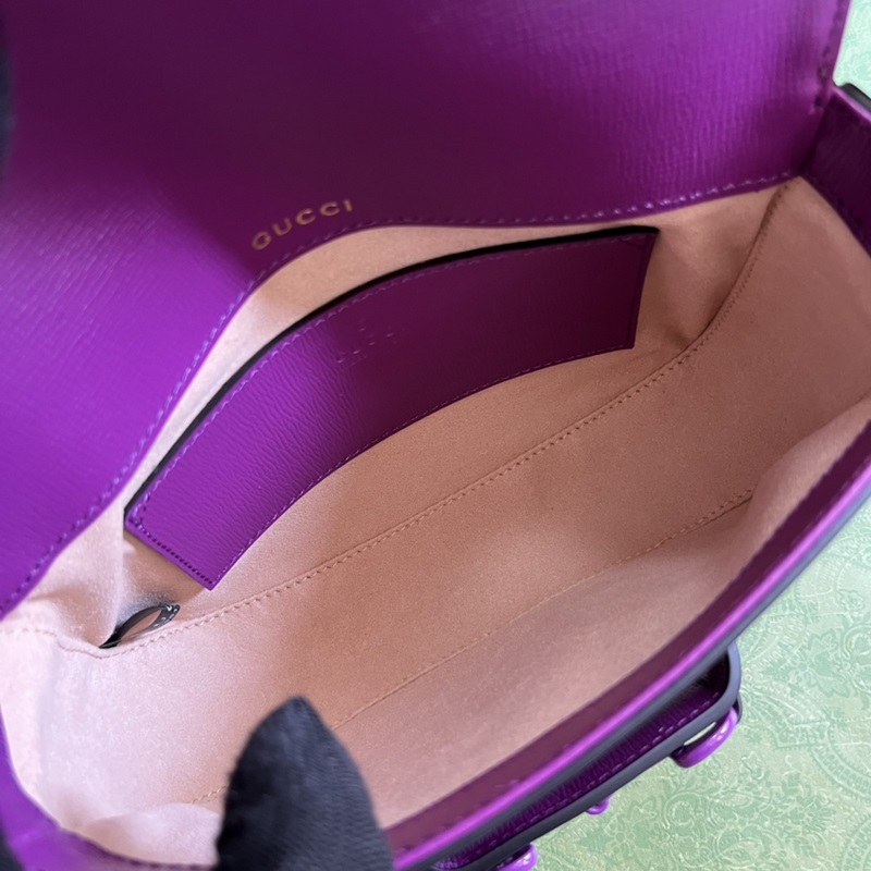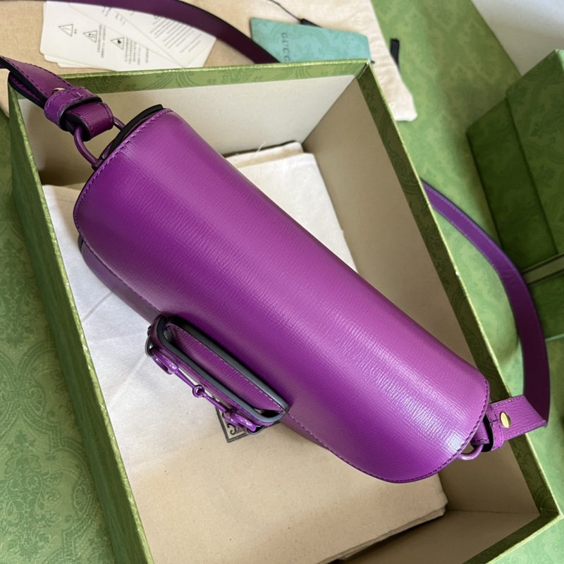 1955-sarjan pieni olkalaukku, tämä 1955-sarjan olkalaukku perii yli 60 vuotta sitten kerättyjen klassisten esineiden linjat ja muotoilun, ja siinä yhdistyvät taitavasti klassiset yksityiskohdat moderniin henkeen. Hevosenbitti on yksi Suomen klassisista perinnöistä, ja se on myös edustava symbolielementti, joka on lainattu hevosmaailmasta. Tämä pieni läpällinen olkalaukku käyttää yksivärisiä asusteita violetilla nahalla. Laukussa on kaksi irrotettavaa olkahihnaa, joista toisessa on ikoninen punainen ja vihreä nauha, ja toinen on valmistettu nahasta. Purppuraiset messingiset tarvikkeet, joissa on keraaminen efektiviimeistely, mokkanahkakuvioinen mikrokuituvuori, edessä hevosbittiyksityiskohdat, puolikkaat hevosbittiyksityiskohdat molemmilla puolilla, kolme kerrosta kulmakiveä sekä vetoketjullinen tasku ja avotasku.